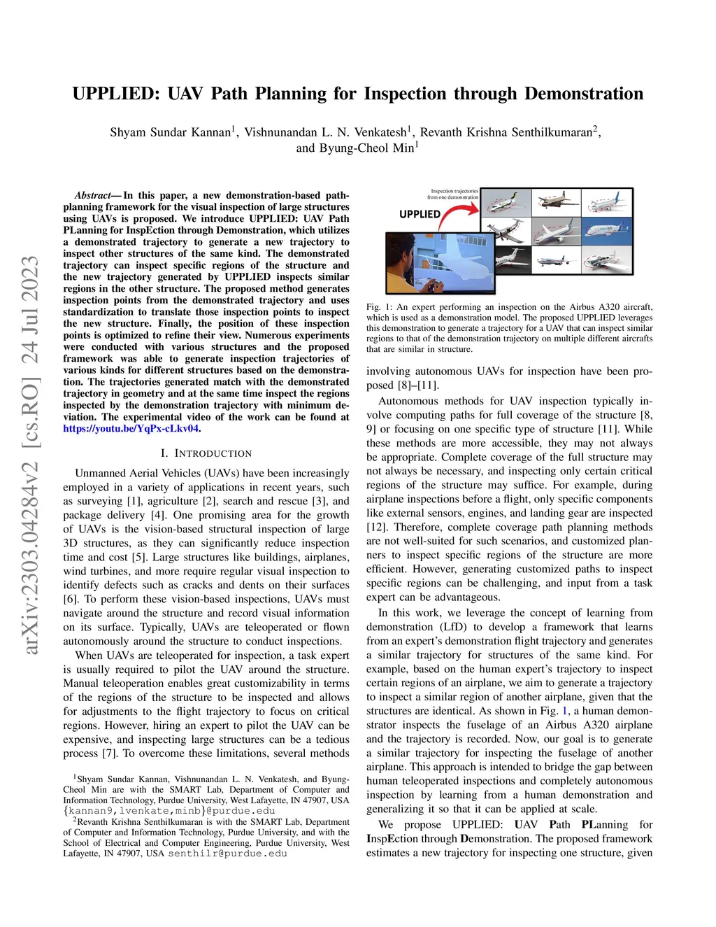 UPPLIED: UAV Path Planning for Inspection through Demonstration