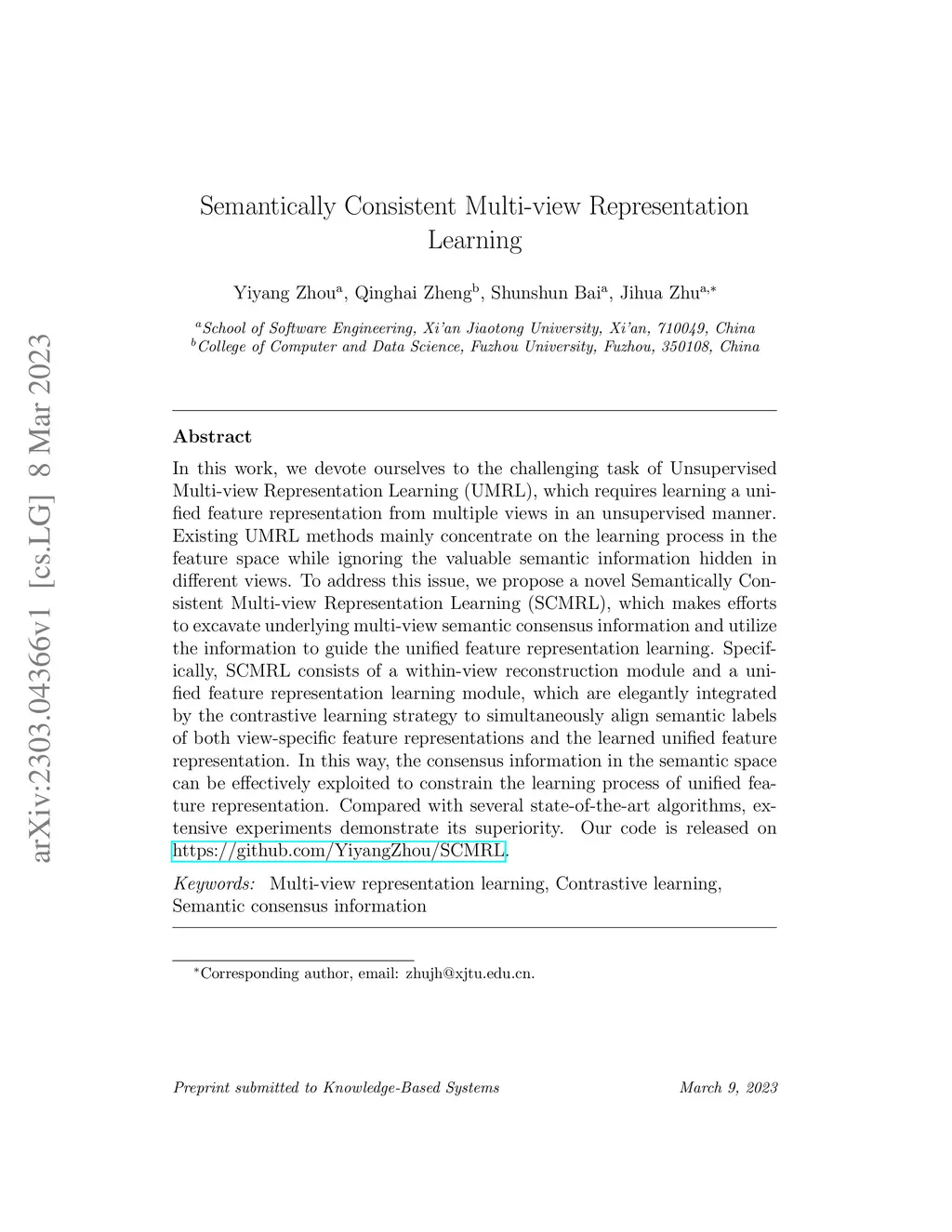 In this work, we devote ourselves to the challenging task of Unsupervised Multi-view Representation Learning (UMRL), which requires learning a unified feature representation from multiple views in an unsupervised manner. Existing UMRL methods mainly concentrate on the learning process in the feature space while ignoring the valuable semantic information hidden in different views. To address this issue, we propose a novel Semantically Consistent Multi-view Representation Learning (SCMRL), which makes efforts to excavate underlying multi-view semantic consensus information and utilize the information to guide the unified feature representation learning. Specifically, SCMRL consists of a within-view reconstruction module and a unified feature representation learning module, which are elegantly integrated by the contrastive learning strategy to simultaneously align semantic labels of both view-specific feature representations and the learned unified feature representation. In this way, the consensus information in the semantic space can be effectively exploited to constrain the learning process of unified feature representation. Compared with several state-of-the-art algorithms, extensive experiments demonstrate its superiority.