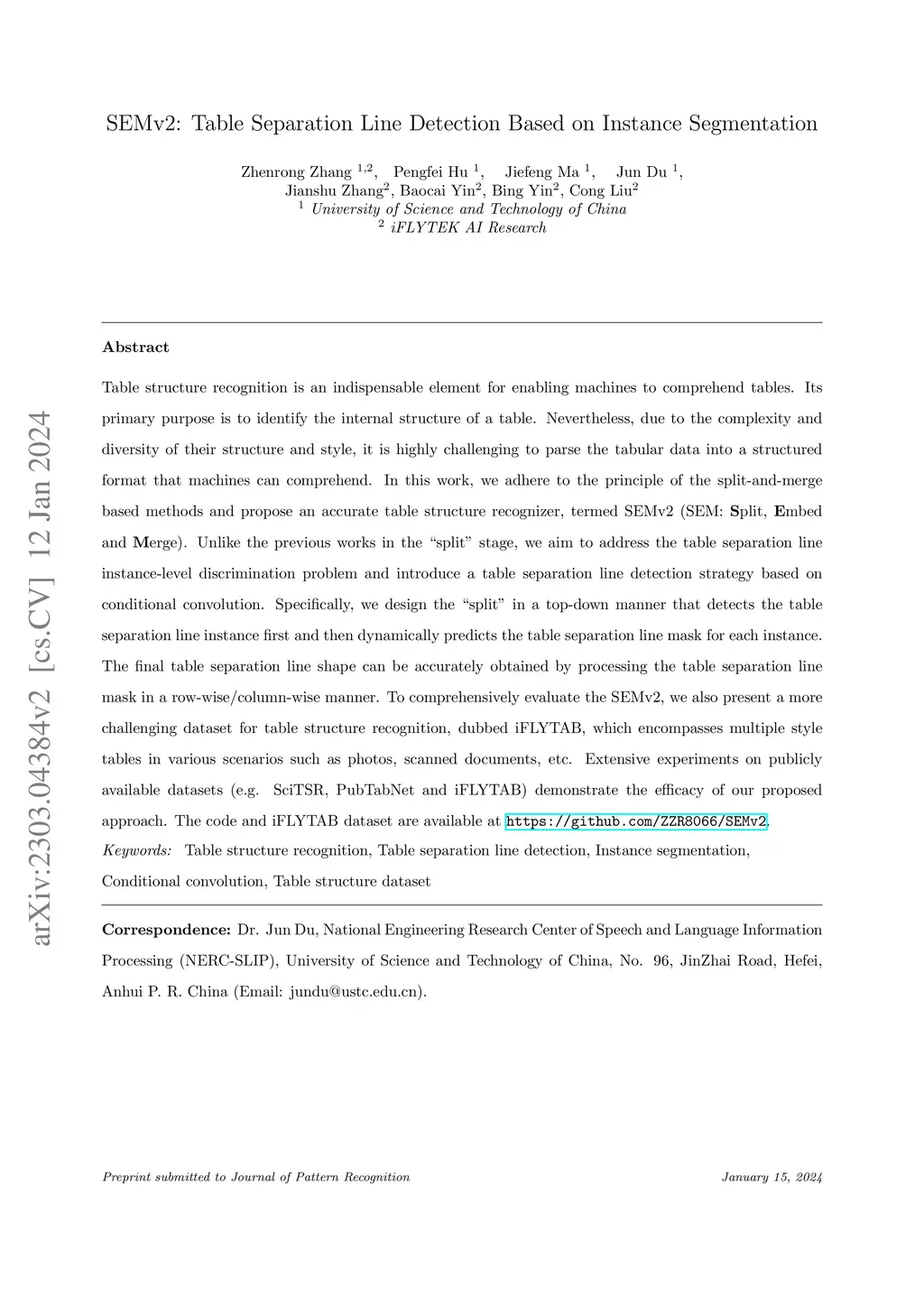SEMv2: Table Separation Line Detection Based on Instance Segmentation