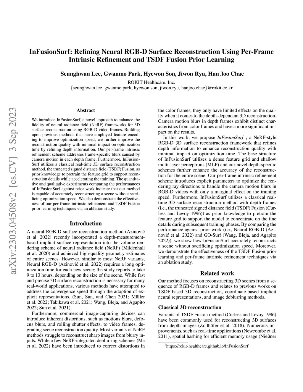 InFusionSurf: Refining Neural RGB-D Surface Reconstruction Using