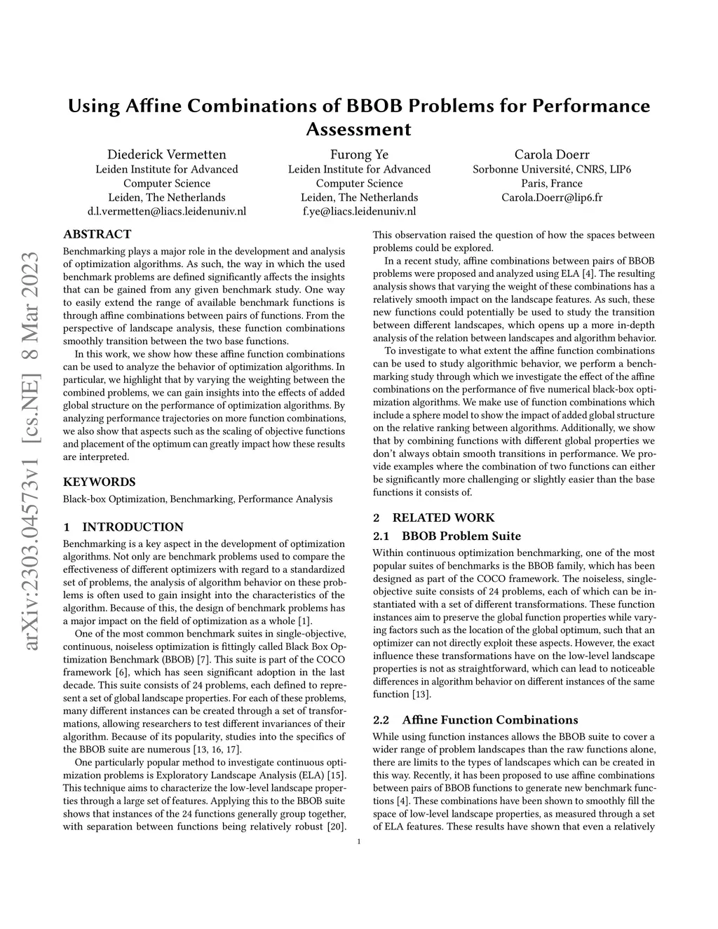 Using Affine Combinations of BBOB Problems for Performance Assessment