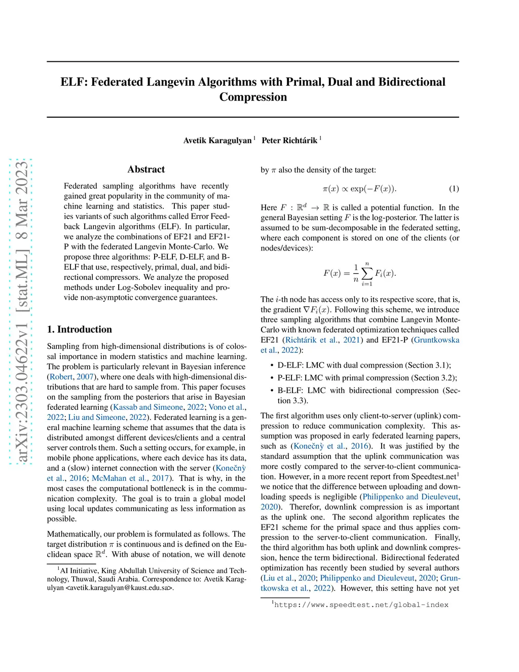 ELF: Federated Langevin Algorithms with Primal, Dual and Bidirectional