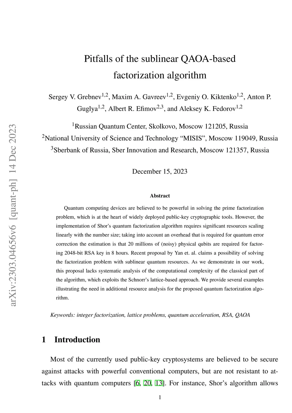 Quantum computing devices are believed to be powerful in solving the prime factorization problem, which is at the heart of widely deployed public-key cryptographic tools. However, the implementation of Shor's quantum factorization algorithm requires significant resources scaling linearly with the number size; taking into account an overhead that is required for quantum error correction the estimation is that 20 millions of (noisy) physical qubits are required for factoring 2048-bit RSA key in 8 hours. Recent proposal by Yan et al. claims a possibility of solving the factorization problem with sublinear quantum resources. As we demonstrate in our work, this proposal lacks systematic analysis of the computational complexity of the classical part of the algorithm, which exploits the Schnorr's lattice-based approach. We provide several examples illustrating the need in additional resource analysis for the proposed quantum factorization algorithm.
