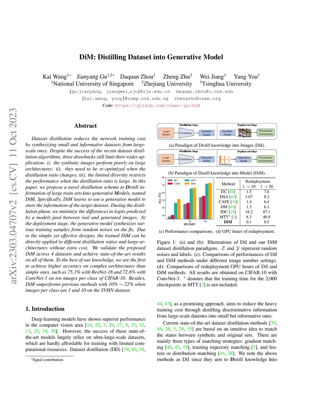 DiM: Distilling Dataset into Generative Model