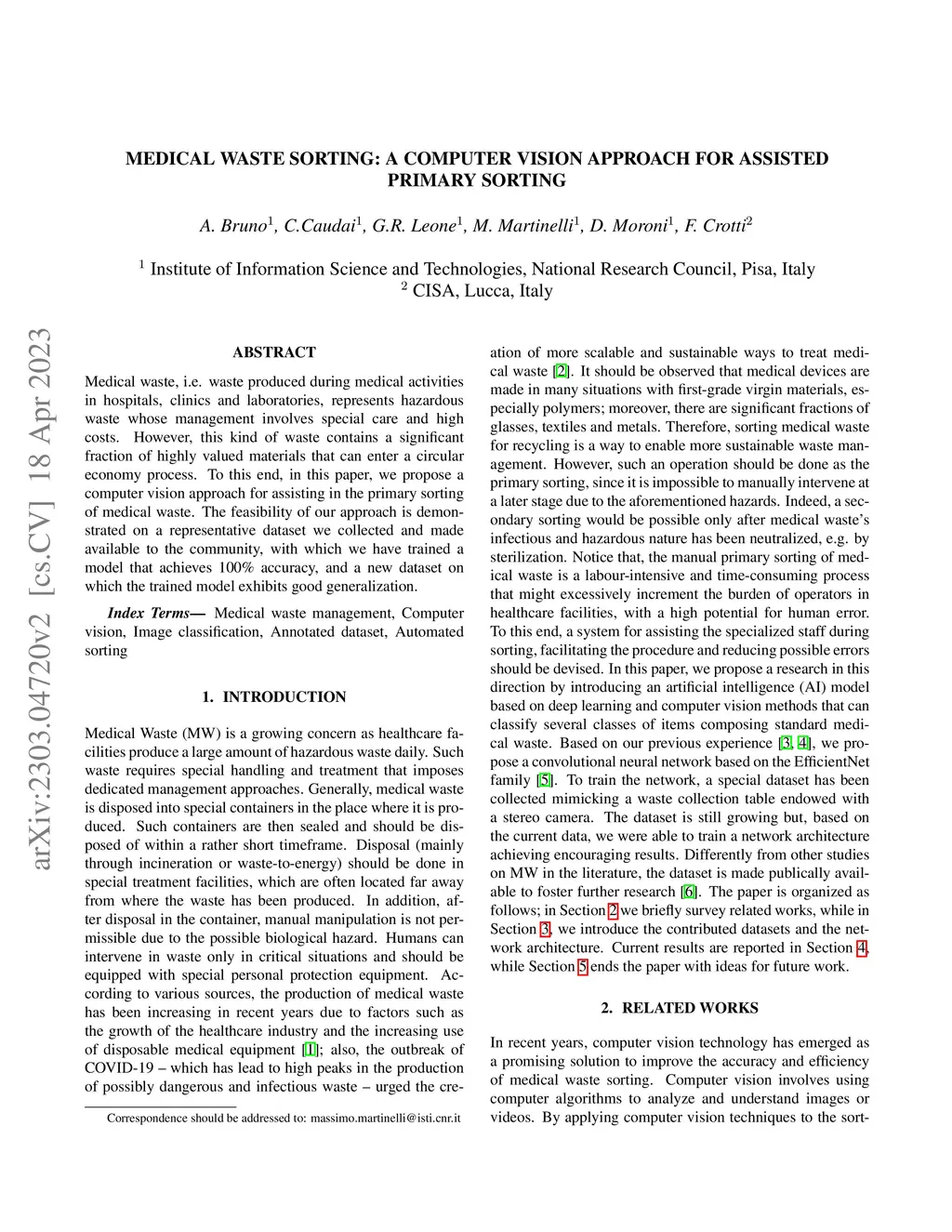 Medical Waste Sorting: a computer vision approach for assisted primary