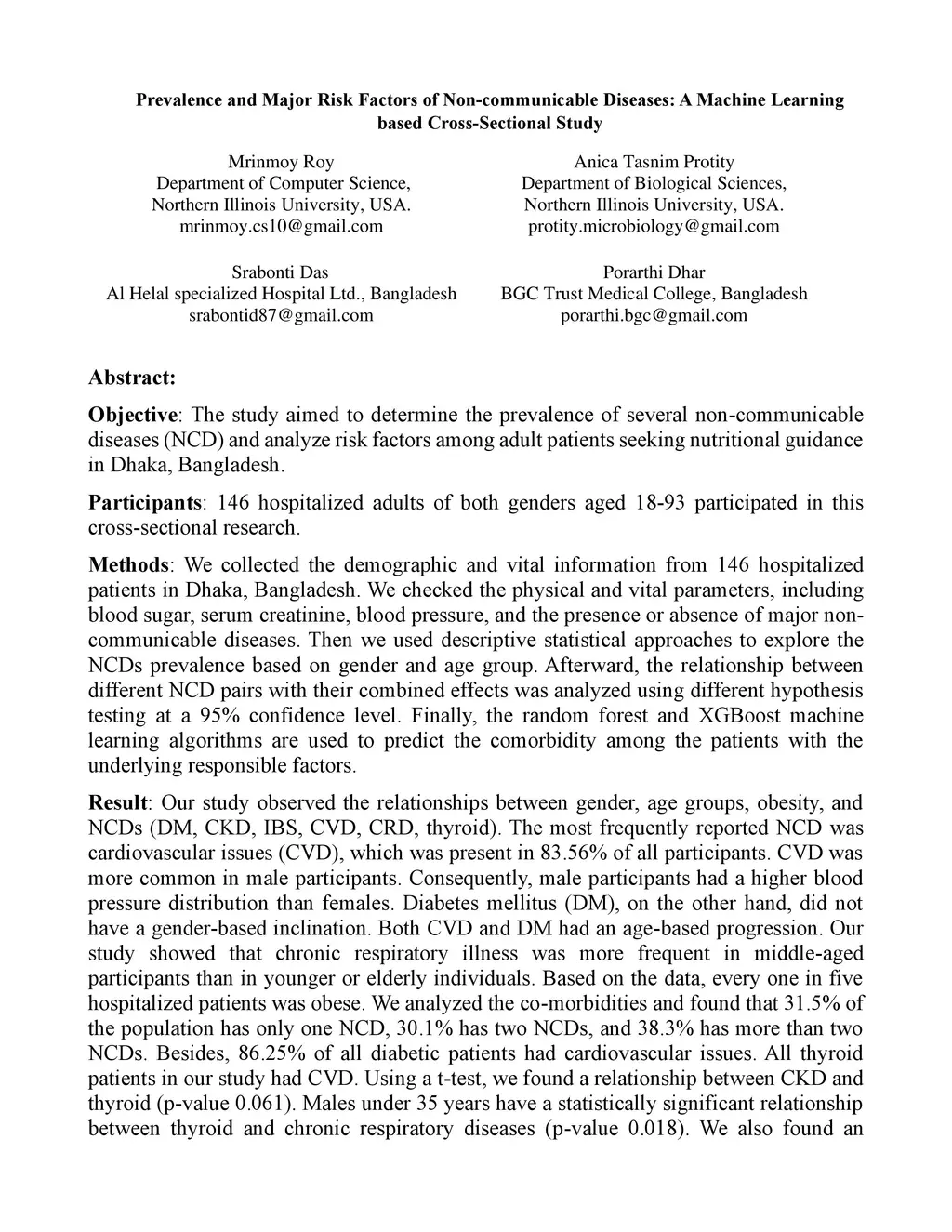 Machine Learning based Cross-Sectional Study