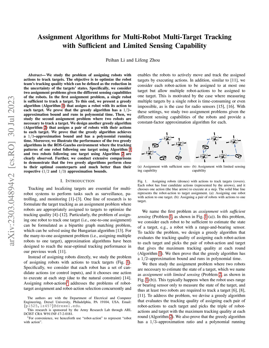 Assignment Algorithms for Multi-Robot Multi-Target Tracking with