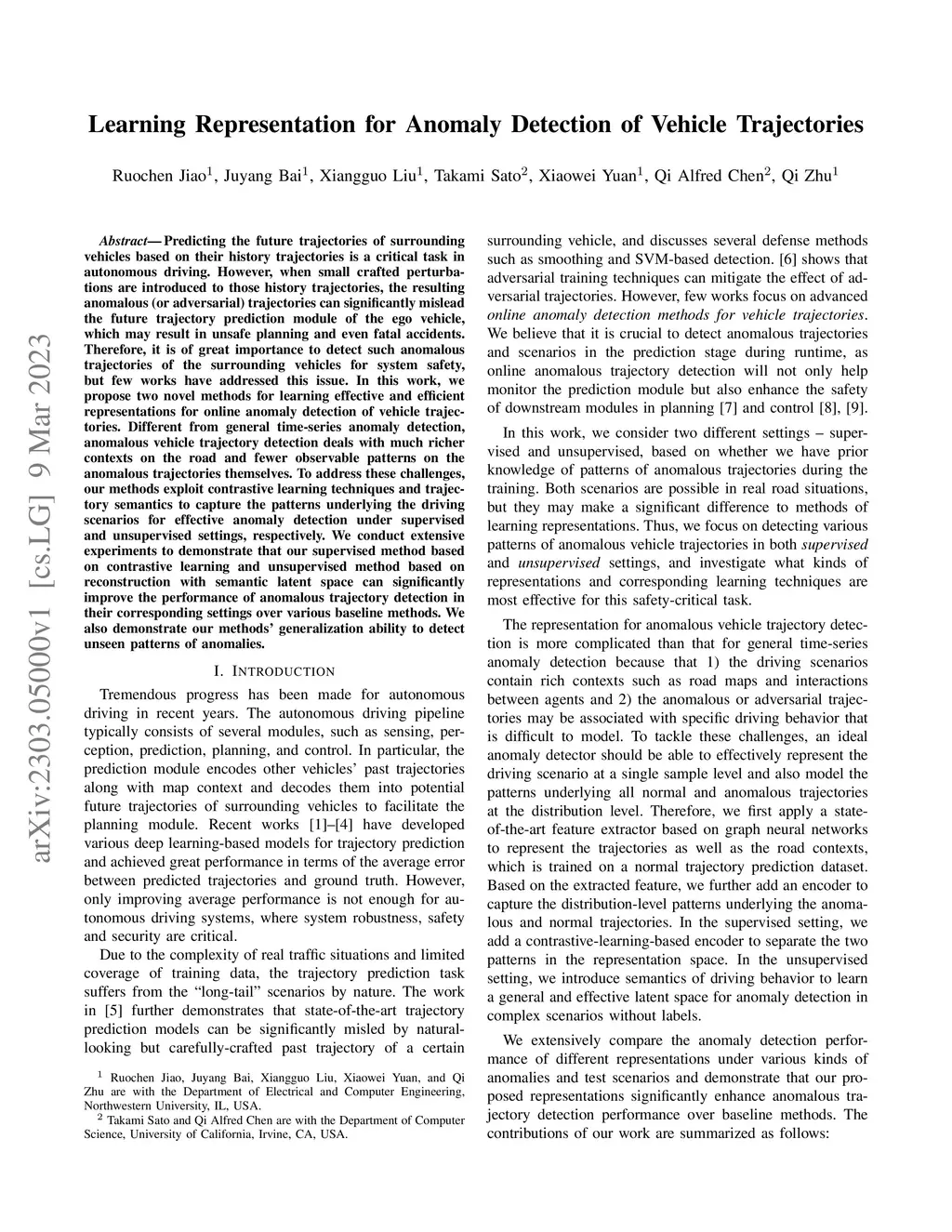 Learning Representation for Anomaly Detection of Vehicle Trajectories