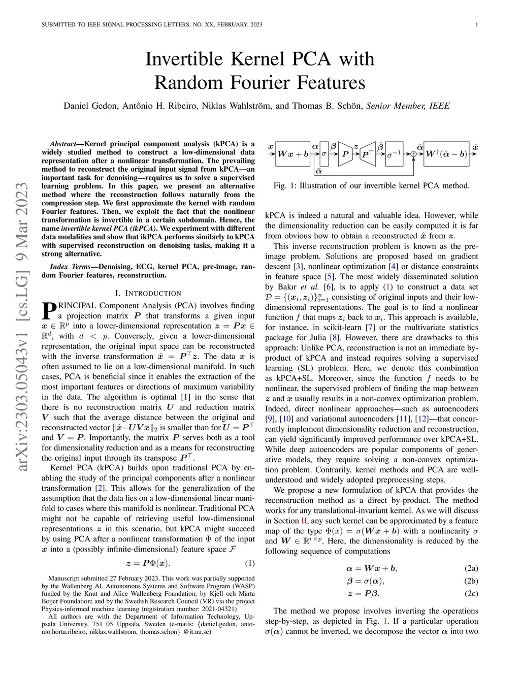 Kernel principal component analysis (kPCA) is a widely studied method to construct a low-dimensional data representation after a nonlinear transformation. The prevailing method to reconstruct the original input signal from kPCA -- an important task for denoising -- requires us to solve a supervised learning problem. In this paper, we present an alternative method where the reconstruction follows naturally from the compression step. We first approximate the kernel with random Fourier features. Then, we exploit the fact that the nonlinear transformation is invertible in a certain subdomain. Hence, the name \emph{invertible kernel PCA (ikPCA)}. We experiment with different data modalities and show that ikPCA performs similarly to kPCA with supervised reconstruction on denoising tasks, making it a strong alternative.
