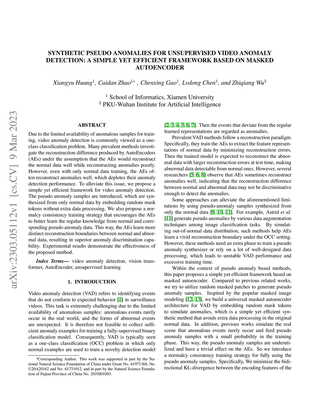 Due to the limited availability of anomalous samples for training, video anomaly detection is commonly viewed as a one-class classification problem. Many prevalent methods investigate the reconstruction difference produced by AutoEncoders (AEs) under the assumption that the AEs would reconstruct the normal data well while reconstructing anomalies poorly. However, even with only normal data training, the AEs often reconstruct anomalies well, which depletes their anomaly detection performance. To alleviate this issue, we propose a simple yet efficient framework for video anomaly detection. The pseudo anomaly samples are introduced, which are synthesized from only normal data by embedding random mask tokens without extra data processing. We also propose a normalcy consistency training strategy that encourages the AEs to better learn the regular knowledge from normal and corresponding pseudo anomaly data. This way, the AEs learn more distinct reconstruction boundaries between normal and abnormal data, resulting in superior anomaly discrimination capability. Experimental results demonstrate the effectiveness of the proposed method.