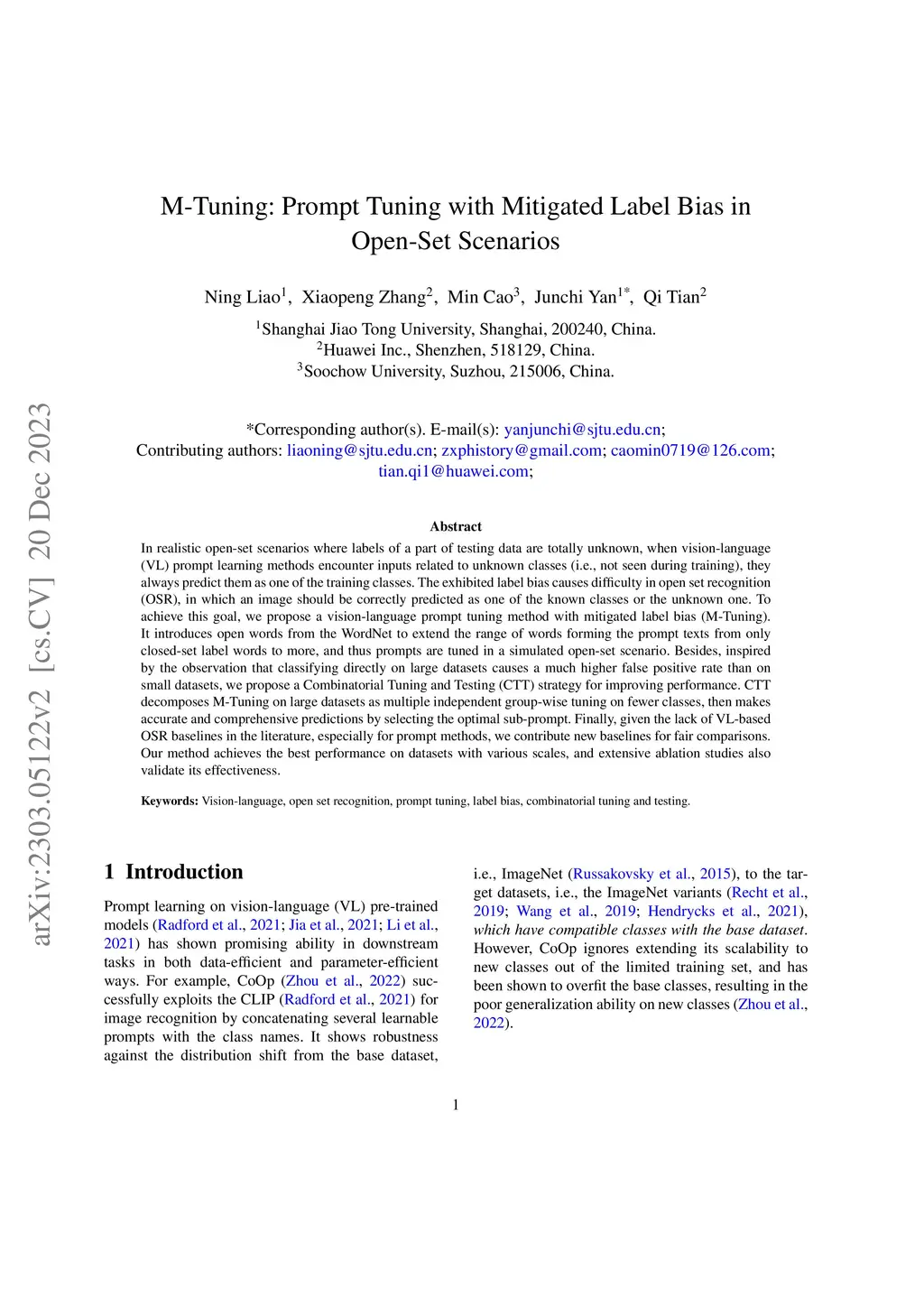 M-Tuning: Prompt Tuning with Mitigated Label Bias in Open-Set Scenarios