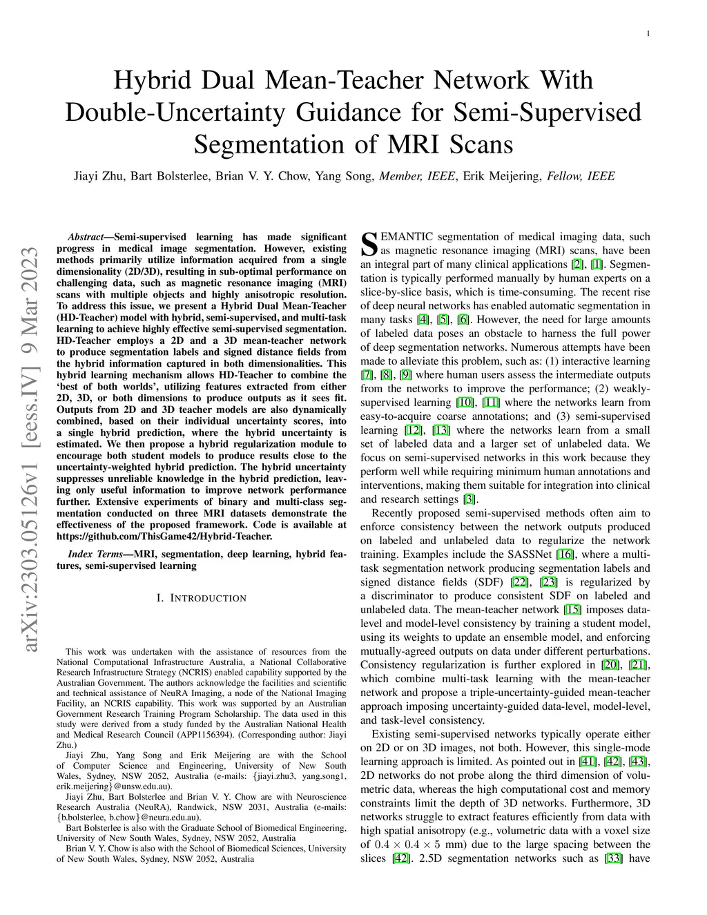 Hybrid Dual Mean-Teacher Network With Double-Uncertainty Guidance for