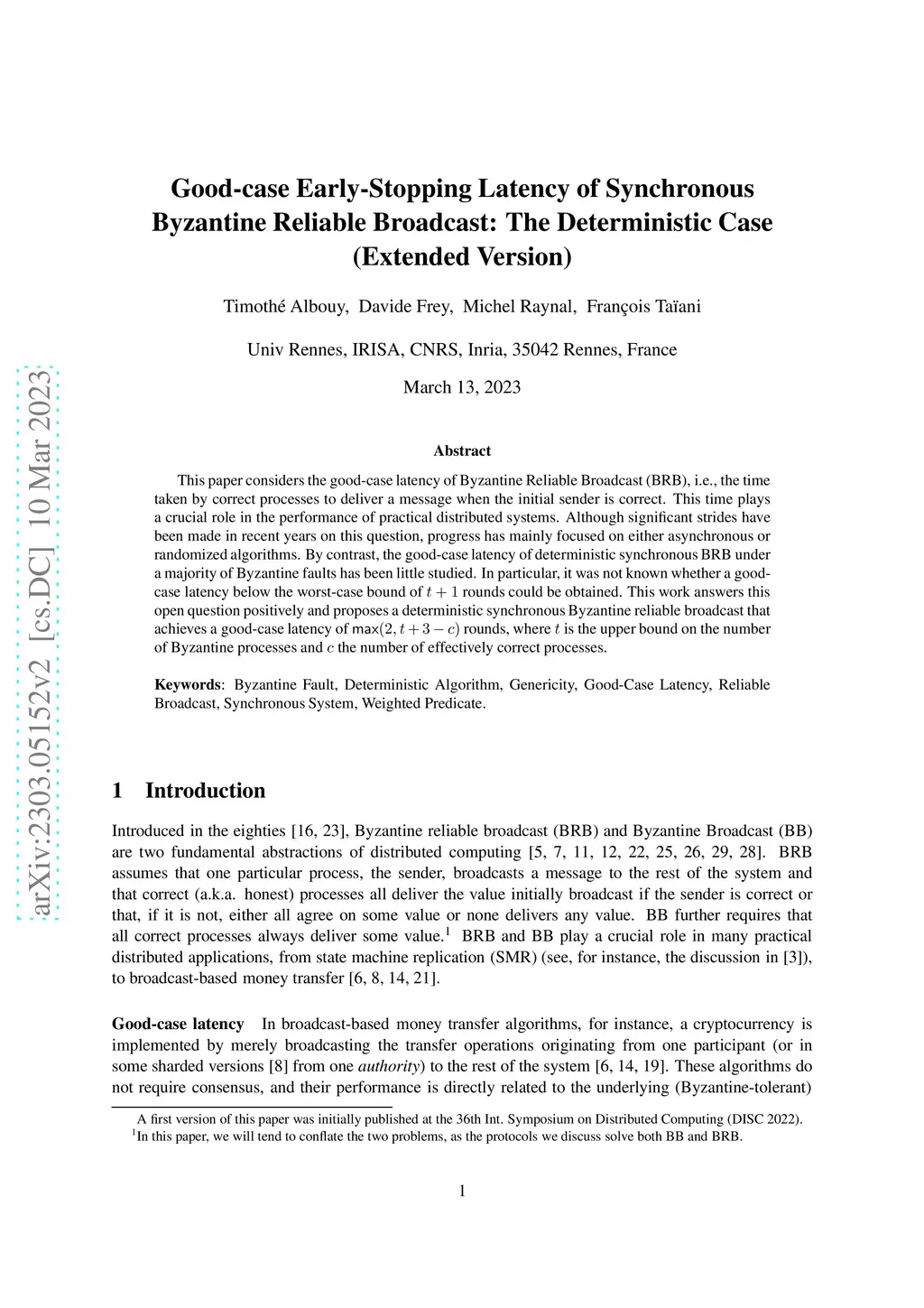 This paper considers the good-case latency of Byzantine Reliable Broadcast (BRB), i.e., the time taken by correct processes to deliver a message when the initial sender is correct. This time plays a crucial role in the performance of practical distributed systems. Although significant strides have been made in recent years on this question, progress has mainly focused on either asynchronous or randomized algorithms. By contrast, the good-case latency of deterministic synchronous BRB under a majority of Byzantine faults has been little studied. In particular, it was not known whether a goodcase latency below the worst-case bound of t + 1 rounds could be obtained. This work answers this open question positively and proposes a deterministic synchronous Byzantine reliable broadcast that achieves a good-case latency of max(2, t + 3 -- c) rounds, where t is the upper bound on the number of Byzantine processes and c the number of effectively correct processes.