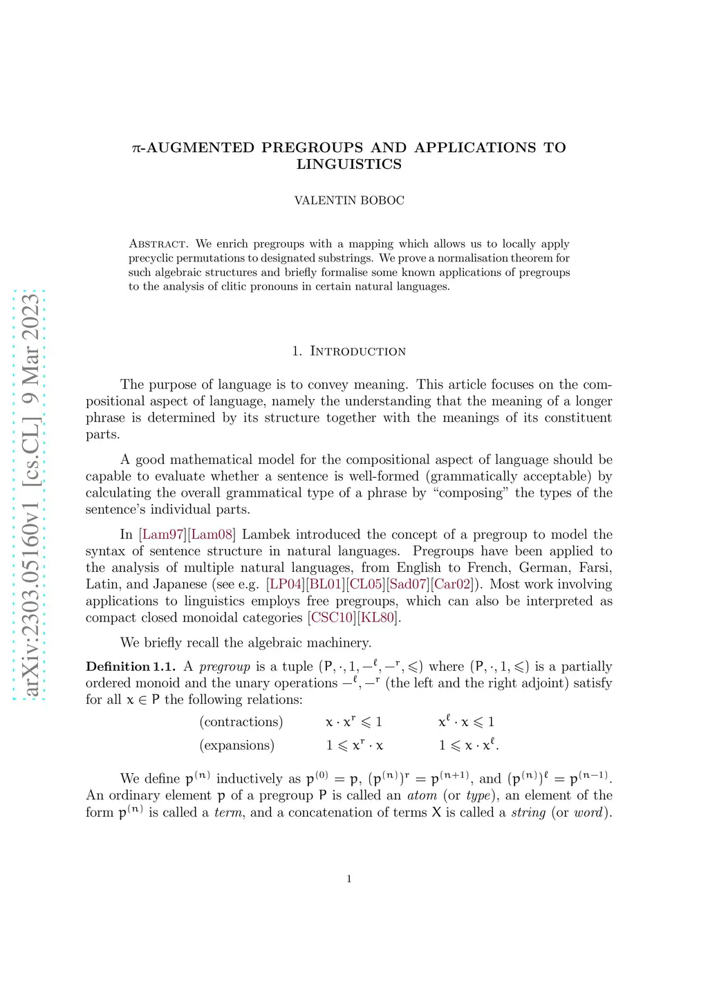 We enrich pregroups with a mapping which allows us to locally apply precyclic permutations to designated substrings. We prove a normalisation theorem for such algebraic structures and briefly formalise some known applications of pregroups to the analysis of clitic pronouns in certain natural languages.