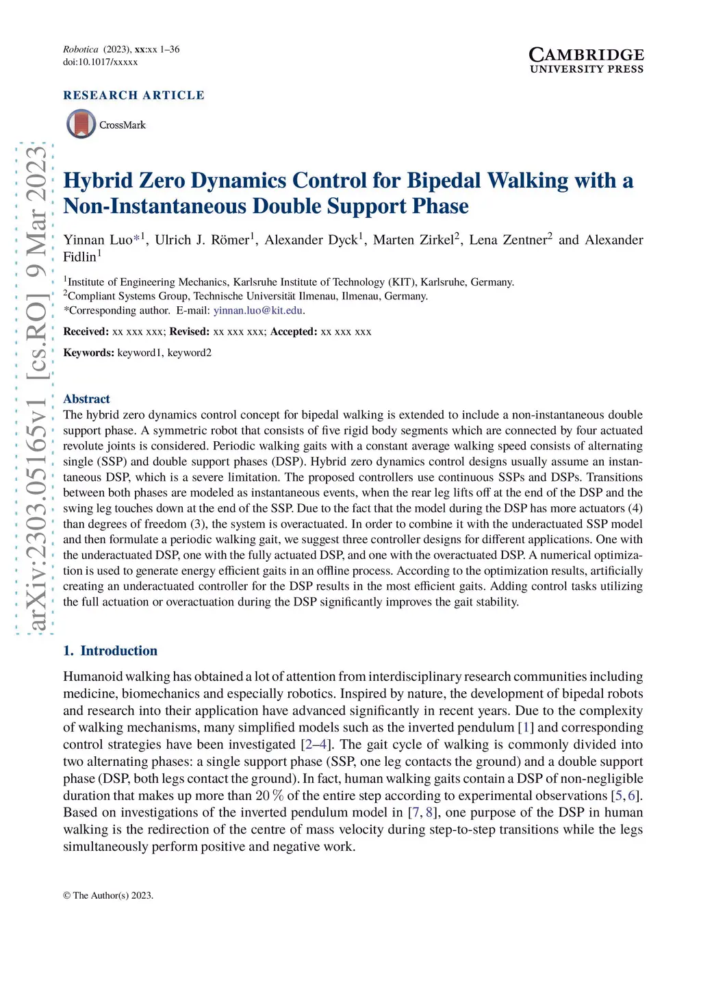 Non-Instantaneous Double Support Phase