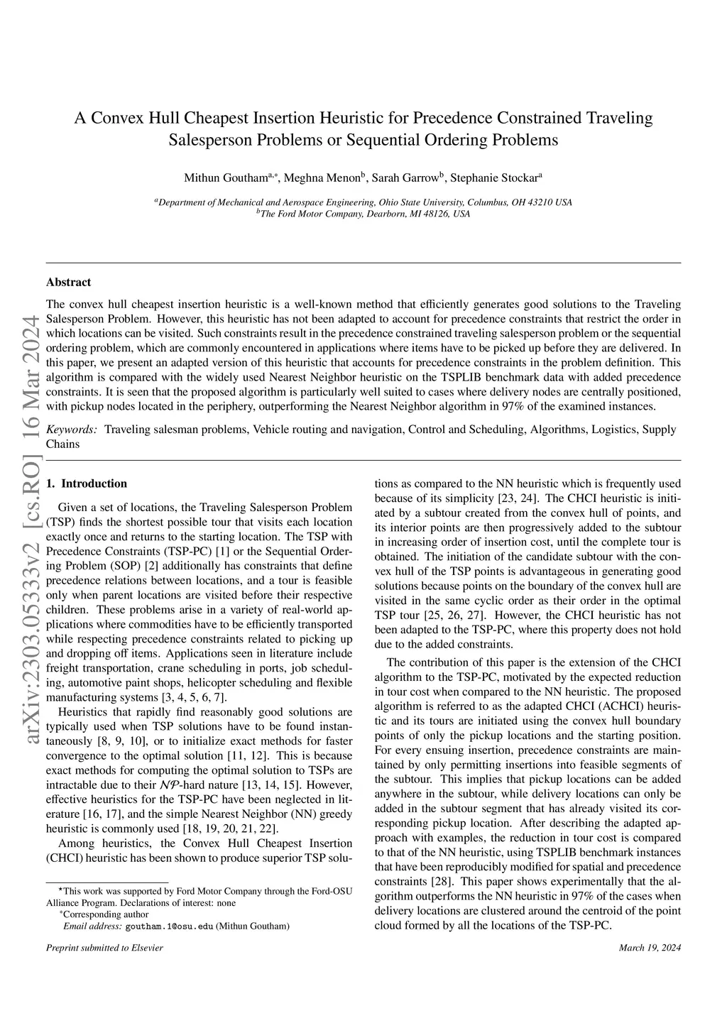 A Convex Hull Cheapest Insertion Heuristic for Precedence Constrained