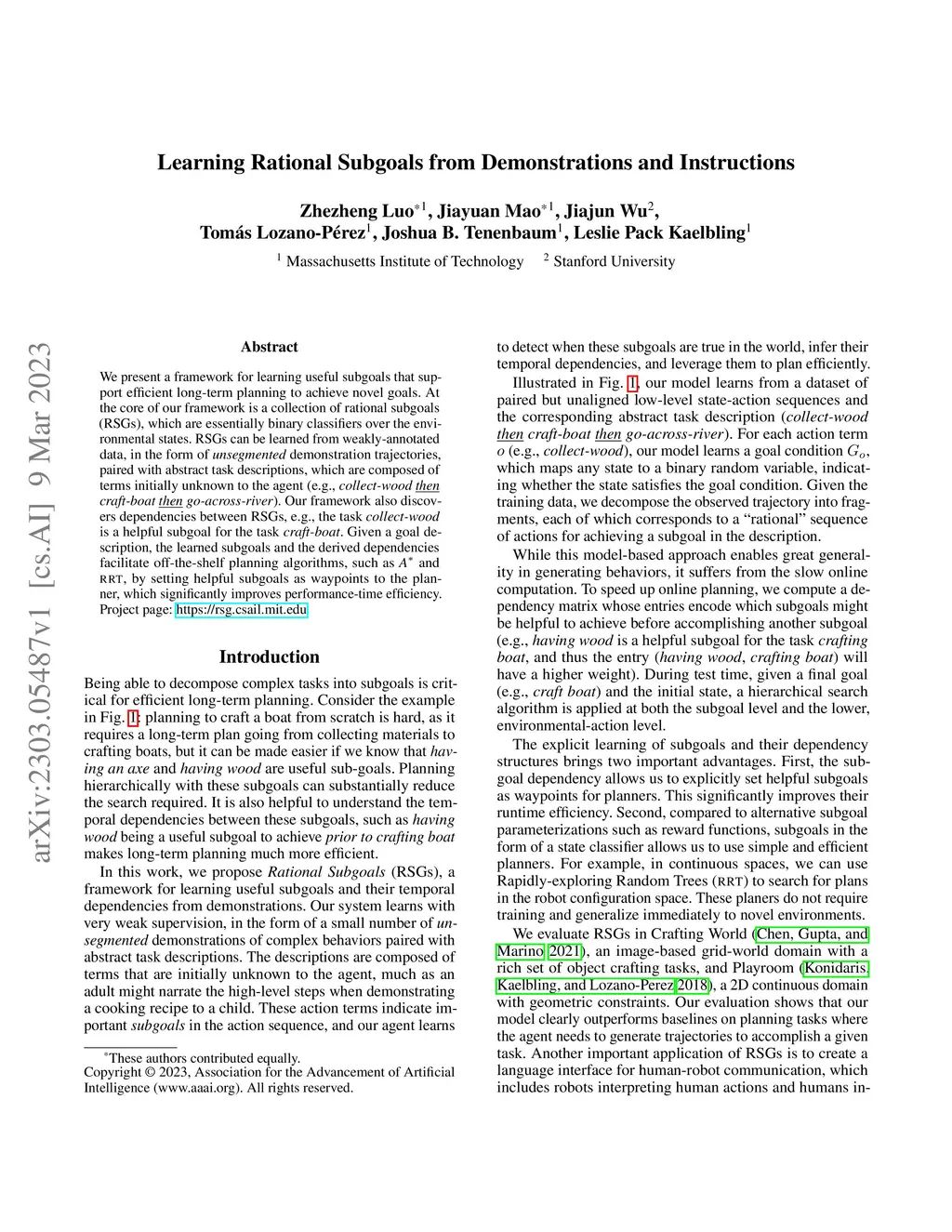 Learning Rational Subgoals from Demonstrations and Instructions