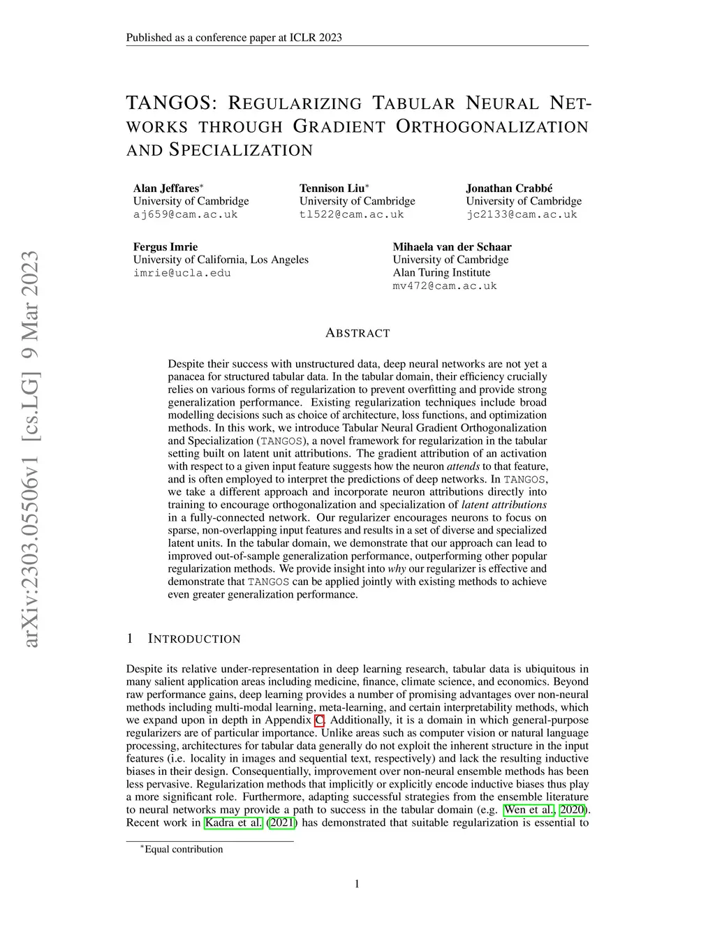 TANGOS: Regularizing Tabular Neural Networks through Gradient