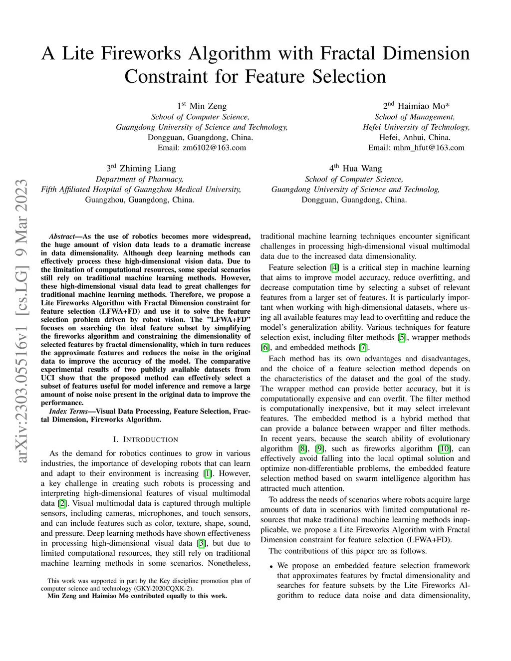 A Lite Fireworks Algorithm with Fractal Dimension Constraint for Feature