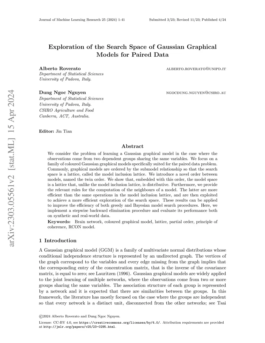 Exploration of the search space of Gaussian graphical models for paired