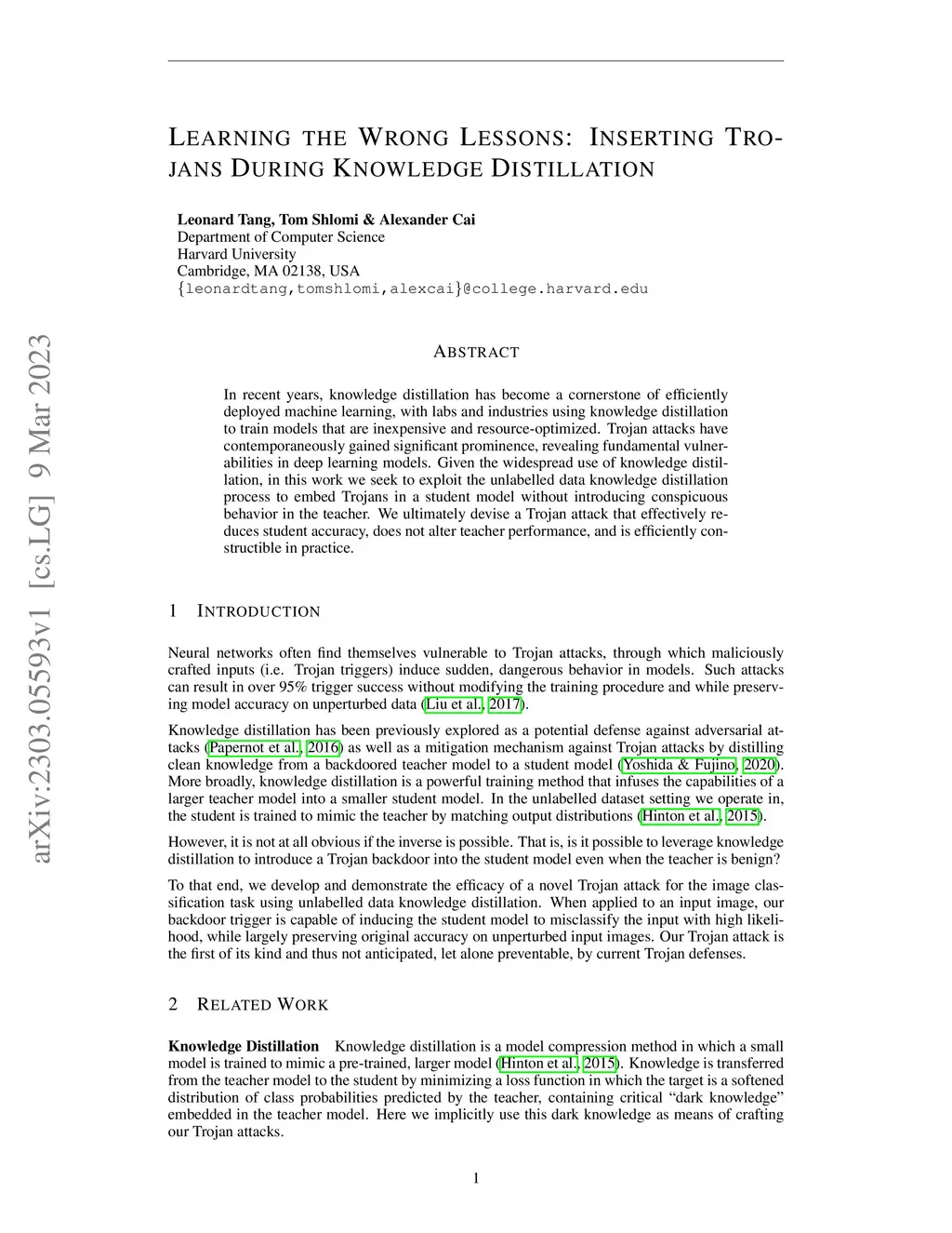 Learning the Wrong Lessons: Inserting Trojans During Knowledge