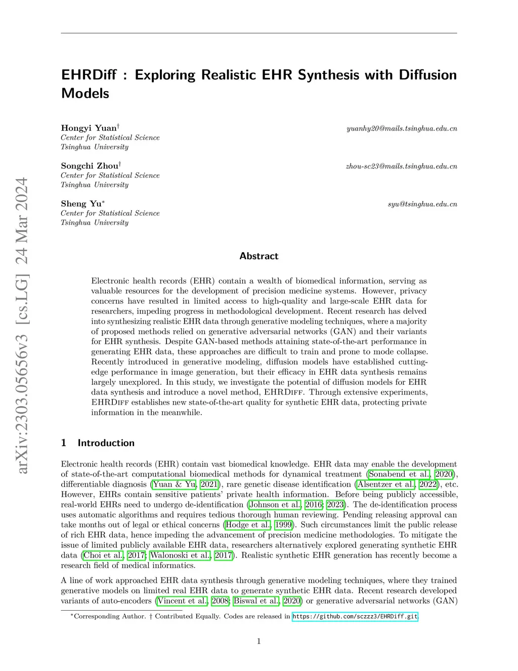 EHRDiff: Exploring Realistic EHR Synthesis with Diffusion Models
