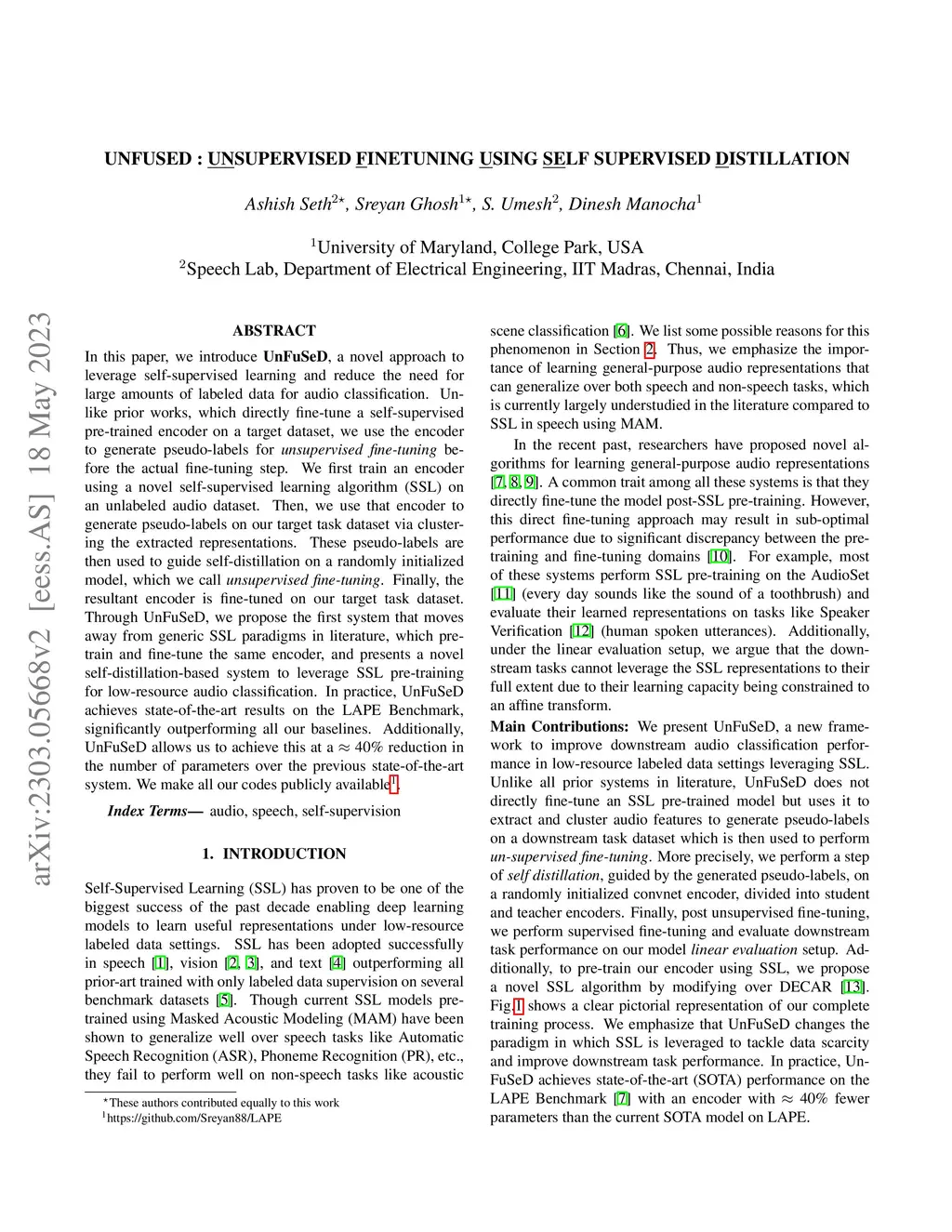 UNFUSED: UNsupervised Finetuning Using SElf supervised Distillation