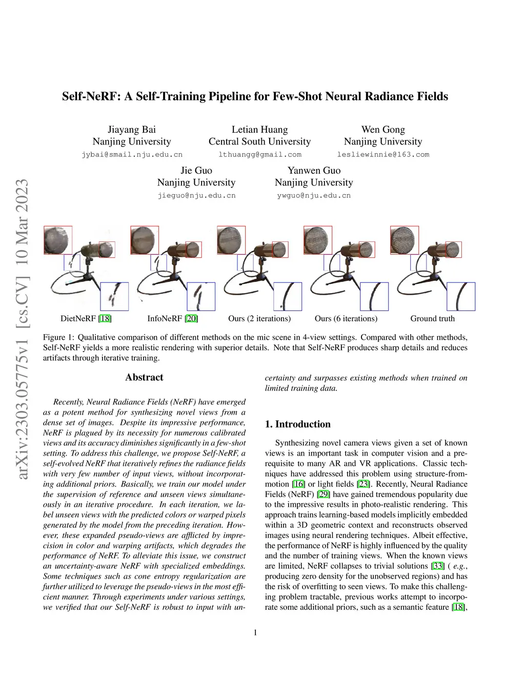 Self-NeRF: A Self-Training Pipeline for Few-Shot Neural Radiance Fields