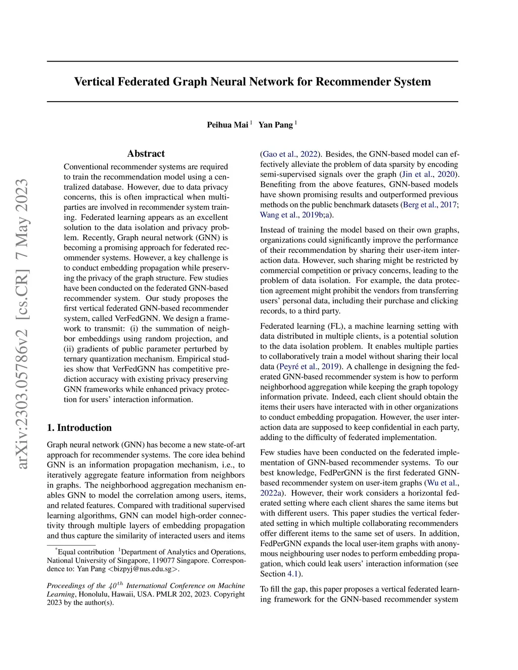 Vertical Federated Graph Neural Network for Recommender System