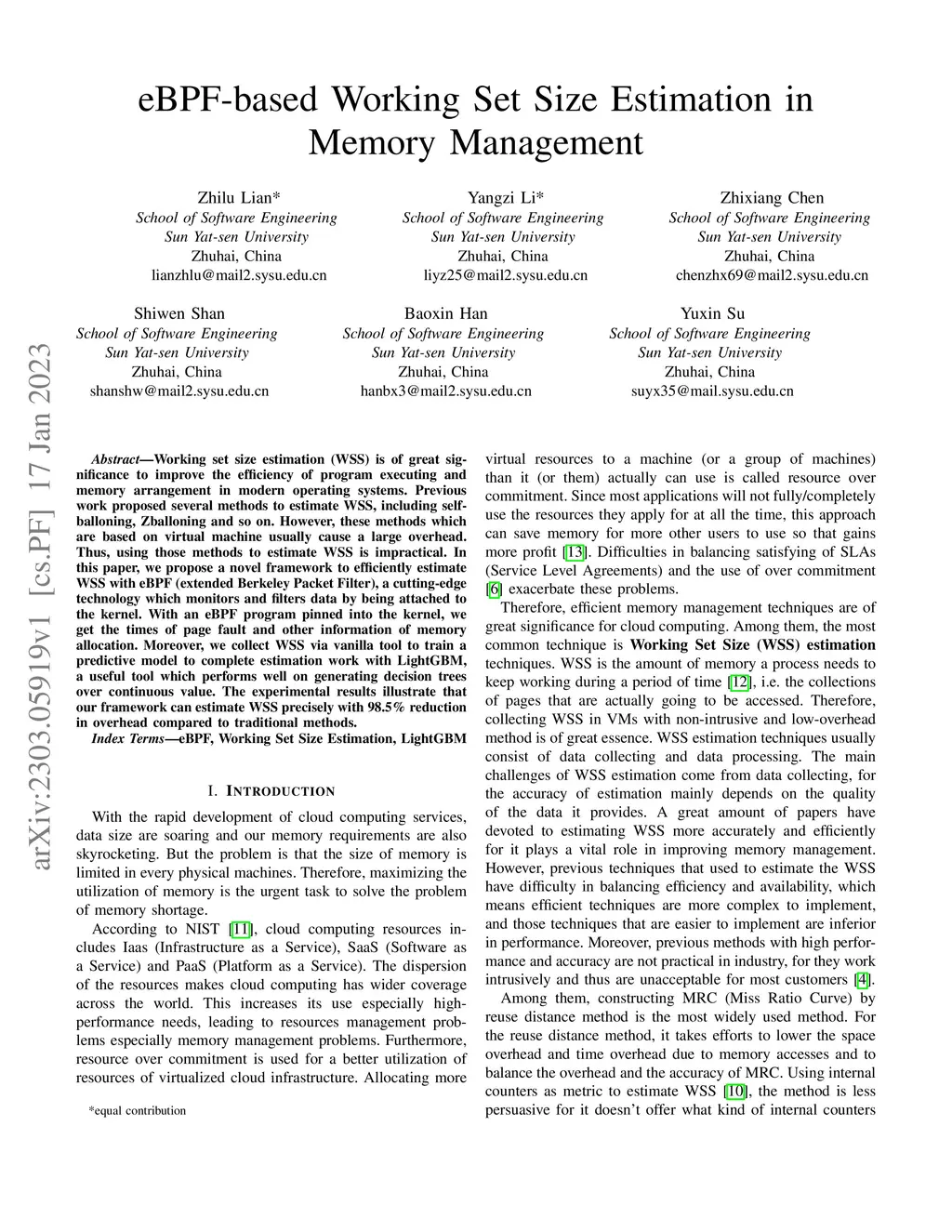 Working set size estimation (WSS) is of great significance to improve the efficiency of program executing and memory arrangement in modern operating systems. Previous work proposed several methods to estimate WSS, including self-balloning, Zballoning and so on. However, these methods which are based on virtual machine usually cause a large overhead. Thus, using those methods to estimate WSS is impractical. In this paper, we propose a novel framework to efficiently estimate WSS with eBPF (extended Berkeley Packet Filter), a cutting-edge technology which monitors and filters data by being attached to the kernel. With an eBPF program pinned into the kernel, we get the times of page fault and other information of memory allocation. Moreover, we collect WSS via vanilla tool to train a predictive model to complete estimation work with LightGBM, a useful tool which performs well on generating decision trees over continuous value. The experimental results illustrate that our framework can estimate WSS precisely with 98.5\% reduction in overhead compared to traditional methods.