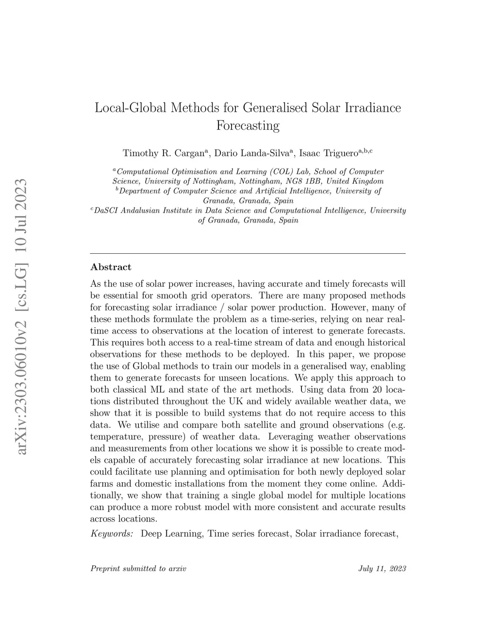 Local-Global Methods for Generalised Solar Irradiance Forecasting