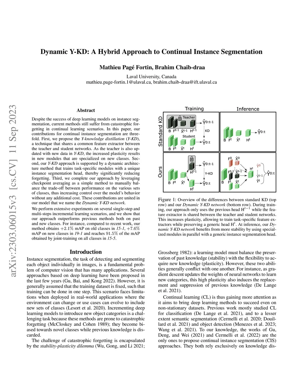 Dynamic Y-KD: A Hybrid Approach to Continual Instance Segmentation