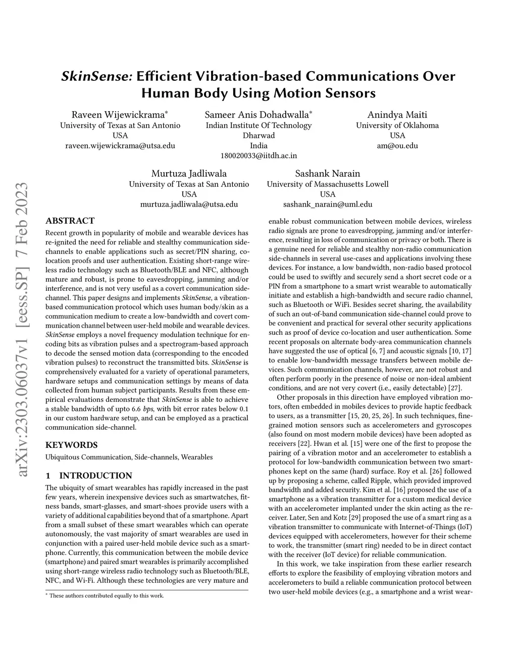 SkinSense: Efficient Vibration-based Communications Over Human Body