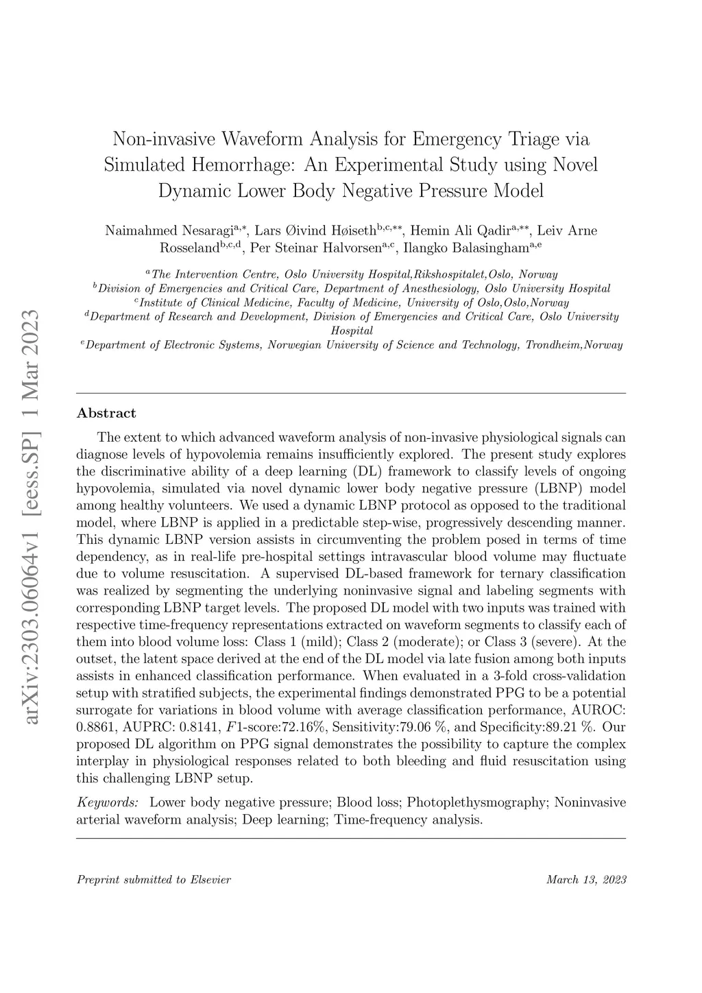 Non-invasive Waveform Analysis for Emergency Triage via Simulated