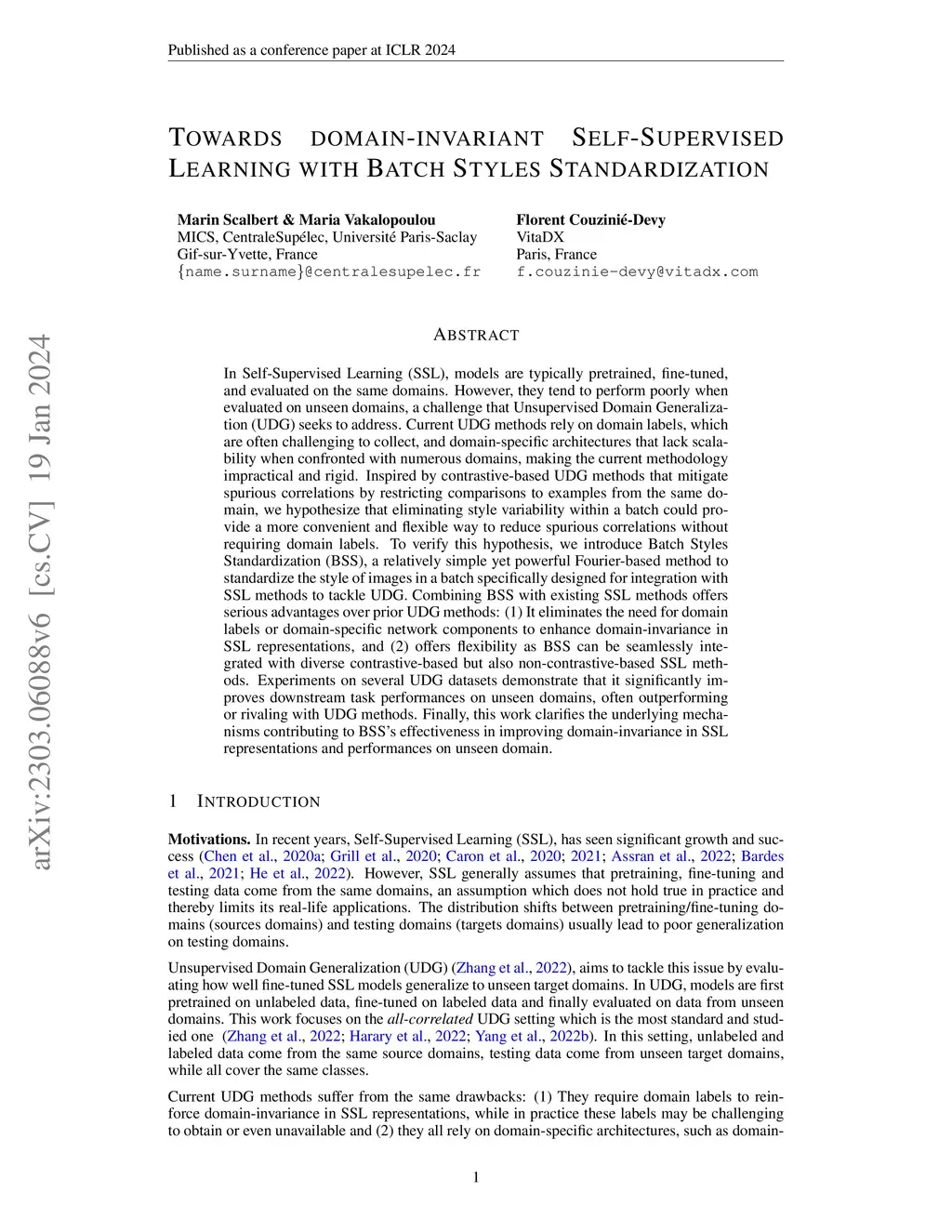 Towards domain-invariant Self-Supervised Learning with Batch Styles