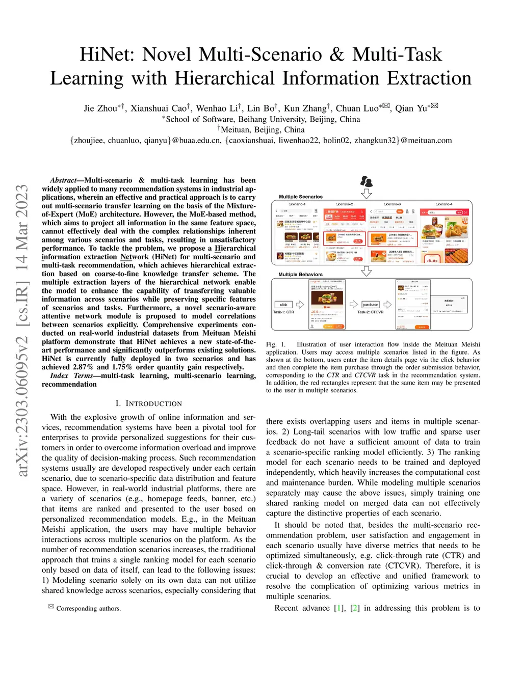 HiNet: Novel Multi-Scenario & Multi-Task Learning with Hierarchical