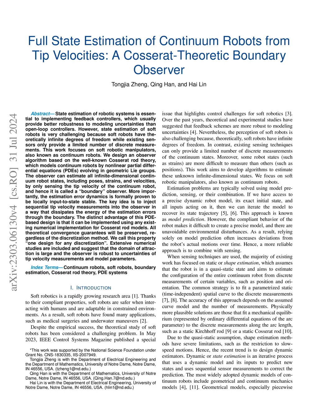 Full State Estimation of Continuum Robots From Tip Velocities: A