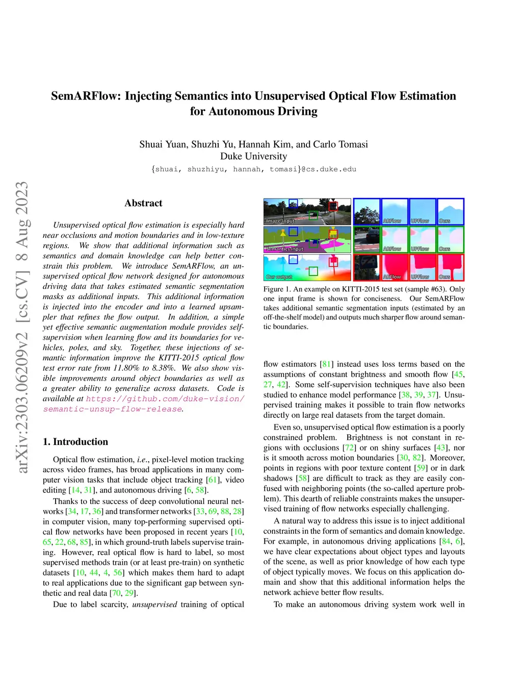 SemARFlow: Injecting Semantics into Unsupervised Optical Flow Estimation