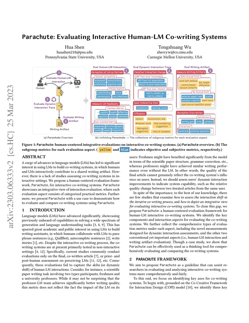 Parachute: Evaluating Interactive Human-LM Co-writing Systems