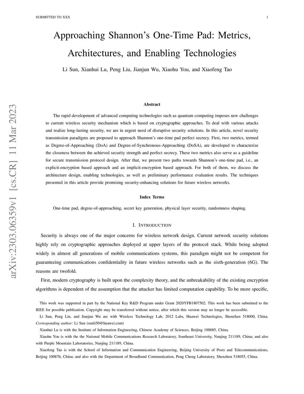 The rapid development of advanced computing technologies such as quantum computing imposes new challenges to current wireless security mechanism which is based on cryptographic approaches. To deal with various attacks and realize long-lasting security, we are in urgent need of disruptive security solutions. In this article, novel security transmission paradigms are proposed to approach Shannon's one-time pad perfect secrecy. First, two metrics, termed as Degree-of-Approaching (DoA) and Degree-of-Synchronous-Approaching (DoSA), are developed to characterize the closeness between the achieved security strength and perfect secrecy. These two metrics also serve as a guideline for secure transmission protocol design. After that, we present two paths towards Shannon's one-time pad, i.e., an explicit-encryption based approach and an implicit-encryption based approach. For both of them, we discuss the architecture design, enabling technologies, as well as preliminary performance evaluation results. The techniques presented in this article provide promising security-enhancing solutions for future wireless networks.