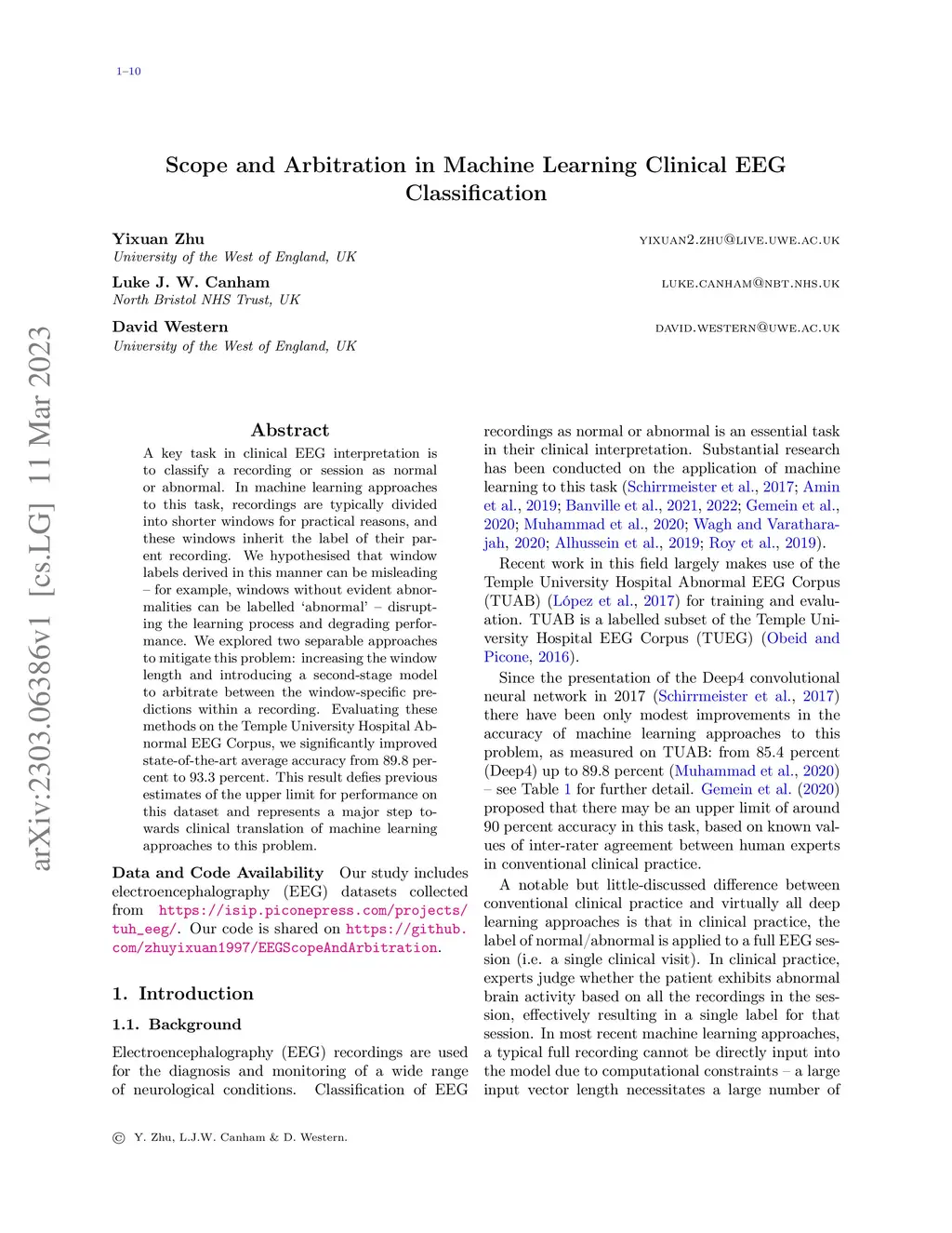 Scope and Arbitration in Machine Learning Clinical EEG Classification