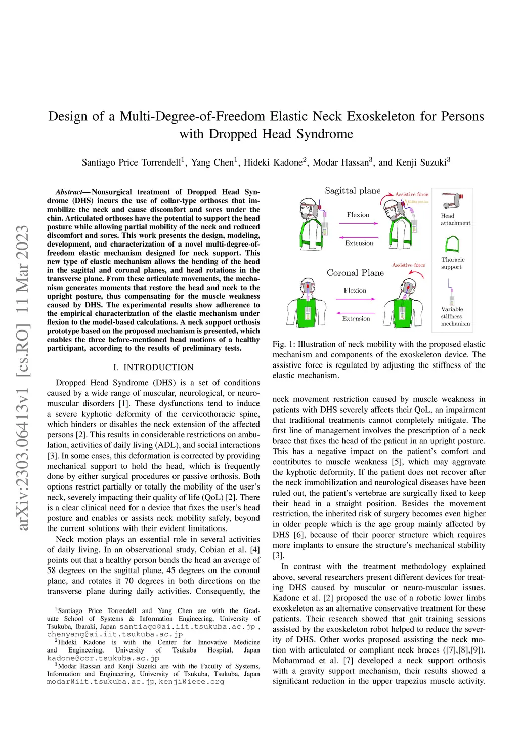 Design of a Multi-Degree-of-Freedom Elastic Neck Exoskeleton for Persons