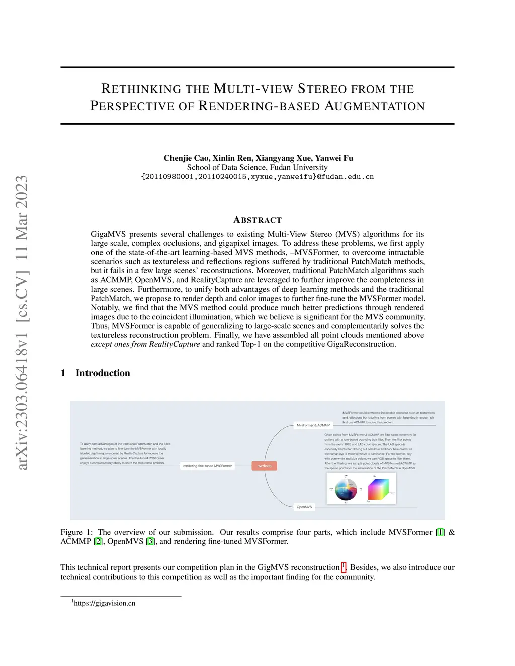 GigaMVS presents several challenges to existing Multi-View Stereo (MVS) algorithms for its large scale, complex occlusions, and gigapixel images. To address these problems, we first apply one of the state-of-the-art learning-based MVS methods, --MVSFormer, to overcome intractable scenarios such as textureless and reflections regions suffered by traditional PatchMatch methods, but it fails in a few large scenes' reconstructions. Moreover, traditional PatchMatch algorithms such as ACMMP, OpenMVS, and RealityCapture are leveraged to further improve the completeness in large scenes. Furthermore, to unify both advantages of deep learning methods and the traditional PatchMatch, we propose to render depth and color images to further fine-tune the MVSFormer model. Notably, we find that the MVS method could produce much better predictions through rendered images due to the coincident illumination, which we believe is significant for the MVS community. Thus, MVSFormer is capable of generalizing to large-scale scenes and complementarily solves the textureless reconstruction problem. Finally, we have assembled all point clouds mentioned above \textit{except ones from RealityCapture} and ranked Top-1 on the competitive GigaReconstruction.