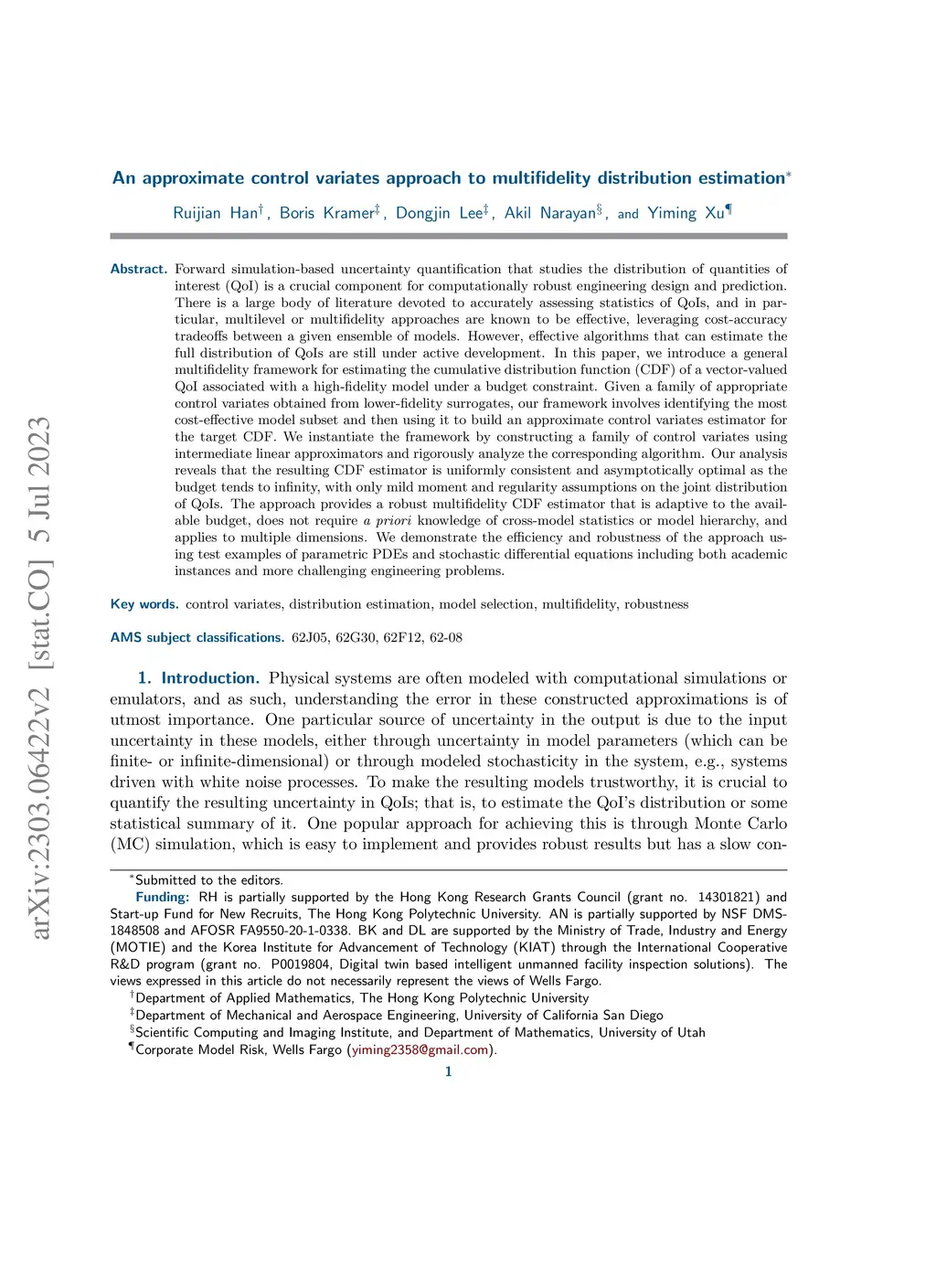 An approximate control variates approach to multifidelity distribution