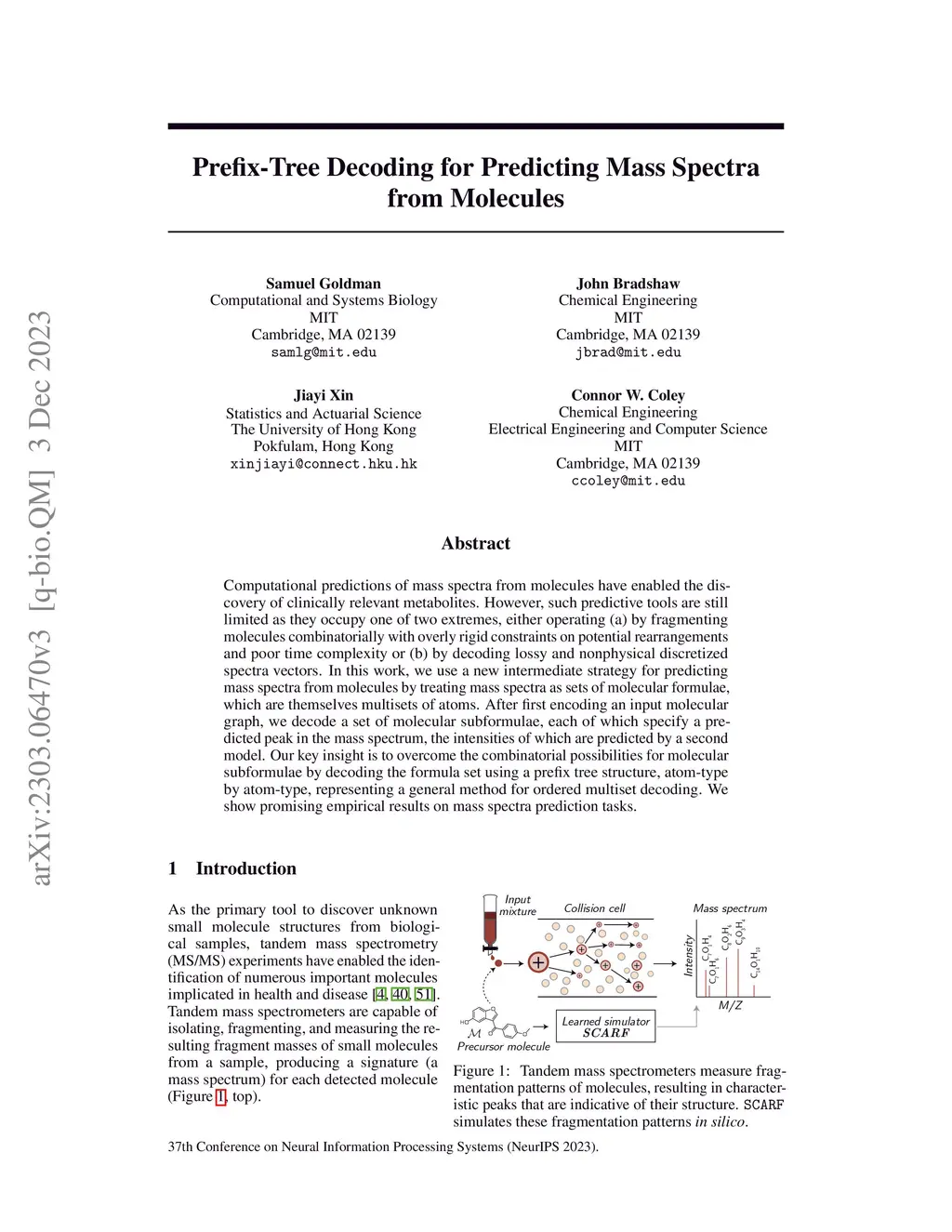 Prefix-Tree Decoding for Predicting Mass Spectra from Molecules
