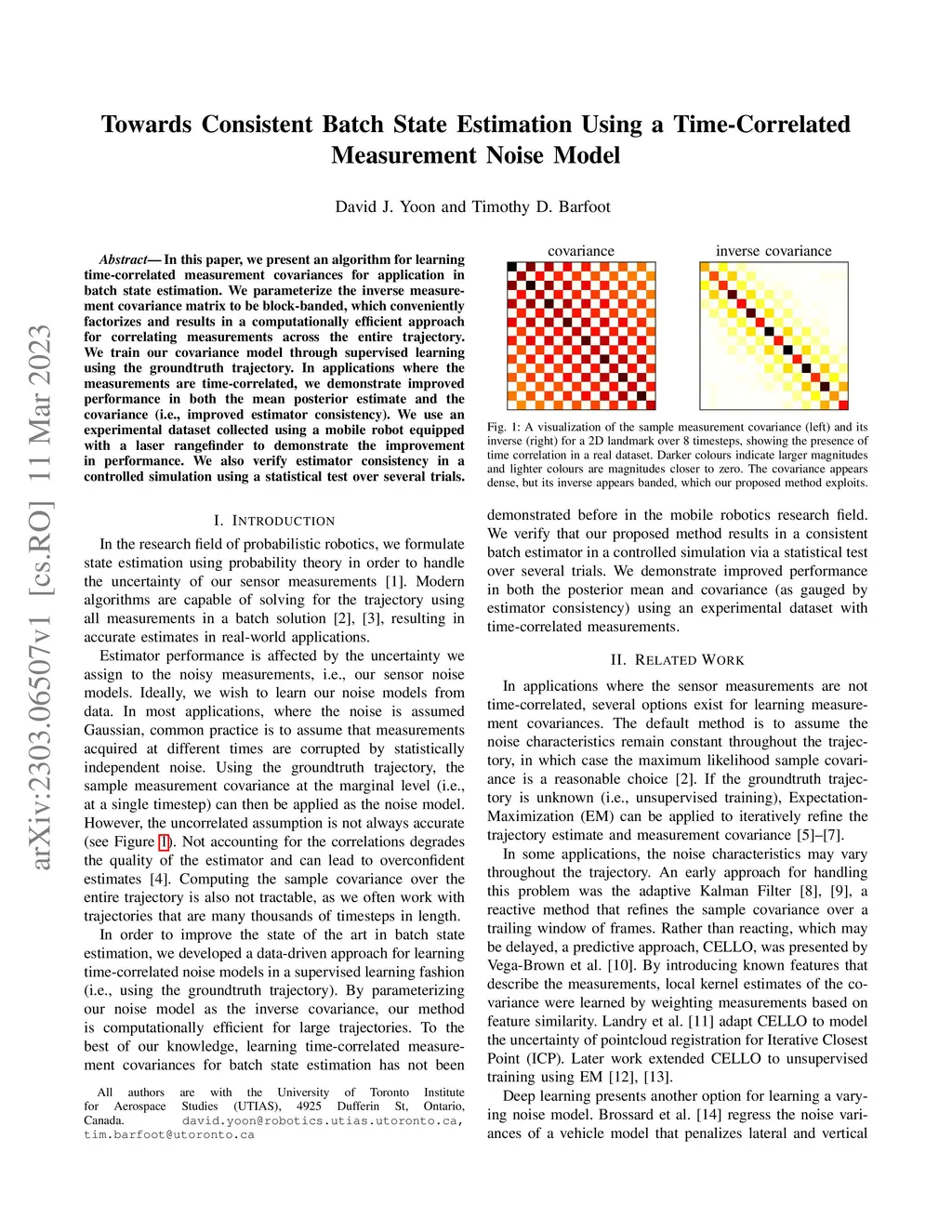 In this paper, we present an algorithm for learning time-correlated measurement covariances for application in batch state estimation. We parameterize the inverse measurement covariance matrix to be block-banded, which conveniently factorizes and results in a computationally efficient approach for correlating measurements across the entire trajectory. We train our covariance model through supervised learning using the groundtruth trajectory. In applications where the measurements are time-correlated, we demonstrate improved performance in both the mean posterior estimate and the covariance (i.e., improved estimator consistency). We use an experimental dataset collected using a mobile robot equipped with a laser rangefinder to demonstrate the improvement in performance. We also verify estimator consistency in a controlled simulation using a statistical test over several trials.