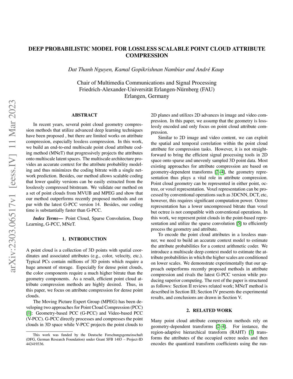 Deep probabilistic model for lossless scalable point cloud attribute
