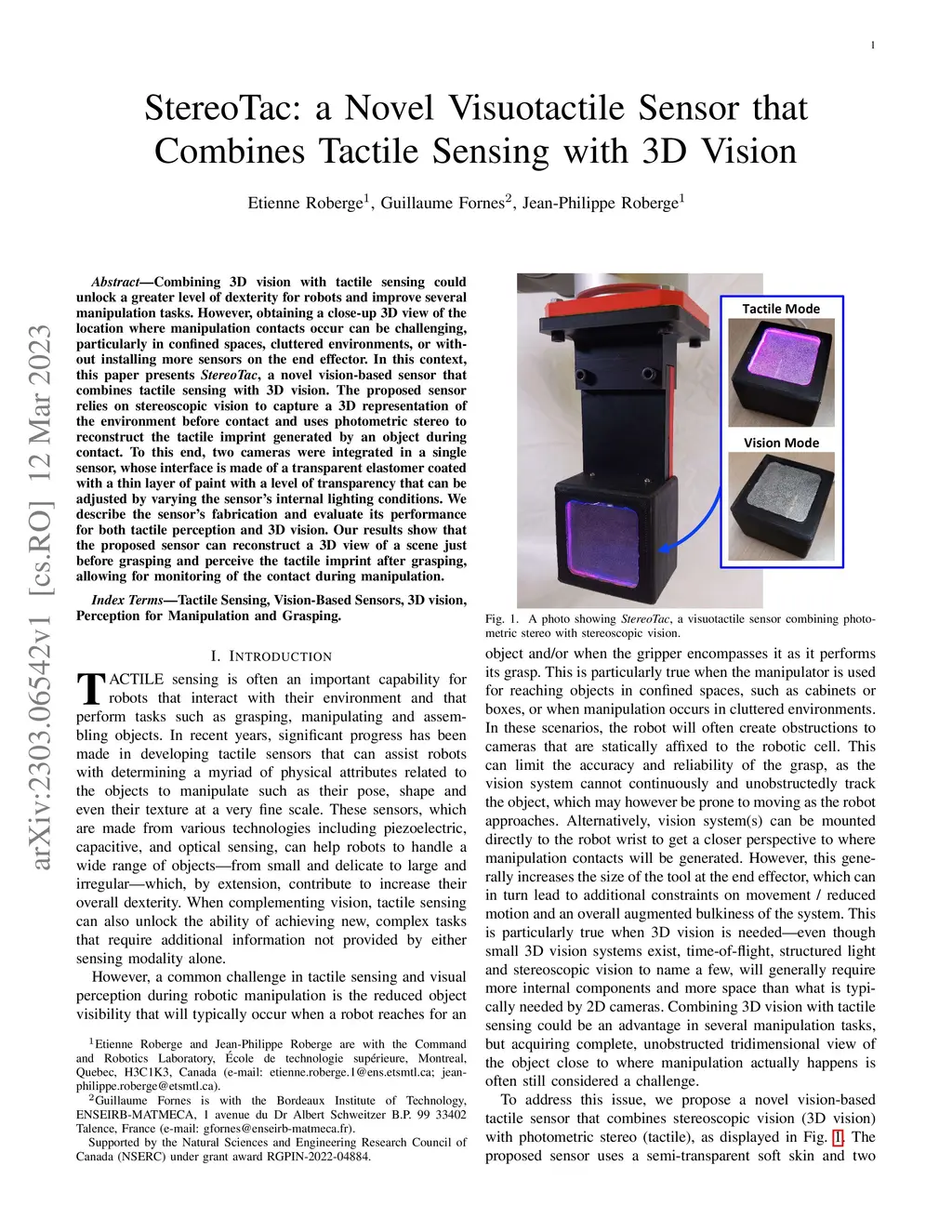 StereoTac: a Novel Visuotactile Sensor that Combines Tactile Sensing