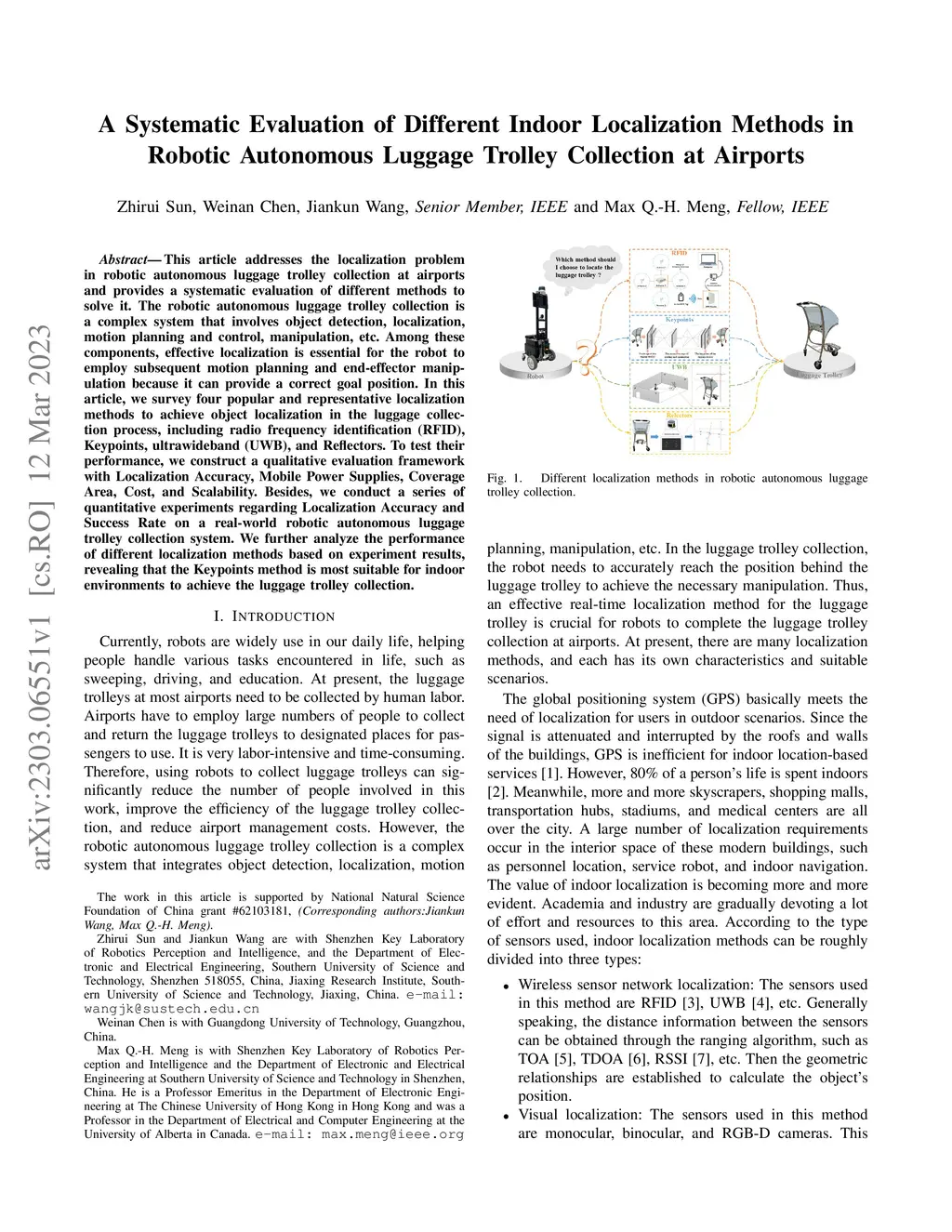 This article addresses the localization problem in robotic autonomous luggage trolley collection at airports and provides a systematic evaluation of different methods to solve it. The robotic autonomous luggage trolley collection is a complex system that involves object detection, localization, motion planning and control, manipulation, etc. Among these components, effective localization is essential for the robot to employ subsequent motion planning and end-effector manipulation because it can provide a correct goal position. In this article, we survey four popular and representative localization methods to achieve object localization in the luggage collection process, including radio frequency identification (RFID), Keypoints, ultrawideband (UWB), and Reflectors. To test their performance, we construct a qualitative evaluation framework with Localization Accuracy, Mobile Power Supplies, Coverage Area, Cost, and Scalability. Besides, we conduct a series of quantitative experiments regarding Localization Accuracy and Success Rate on a real-world robotic autonomous luggage trolley collection system. We further analyze the performance of different localization methods based on experiment results, revealing that the Keypoints method is most suitable for indoor environments to achieve the luggage trolley collection.