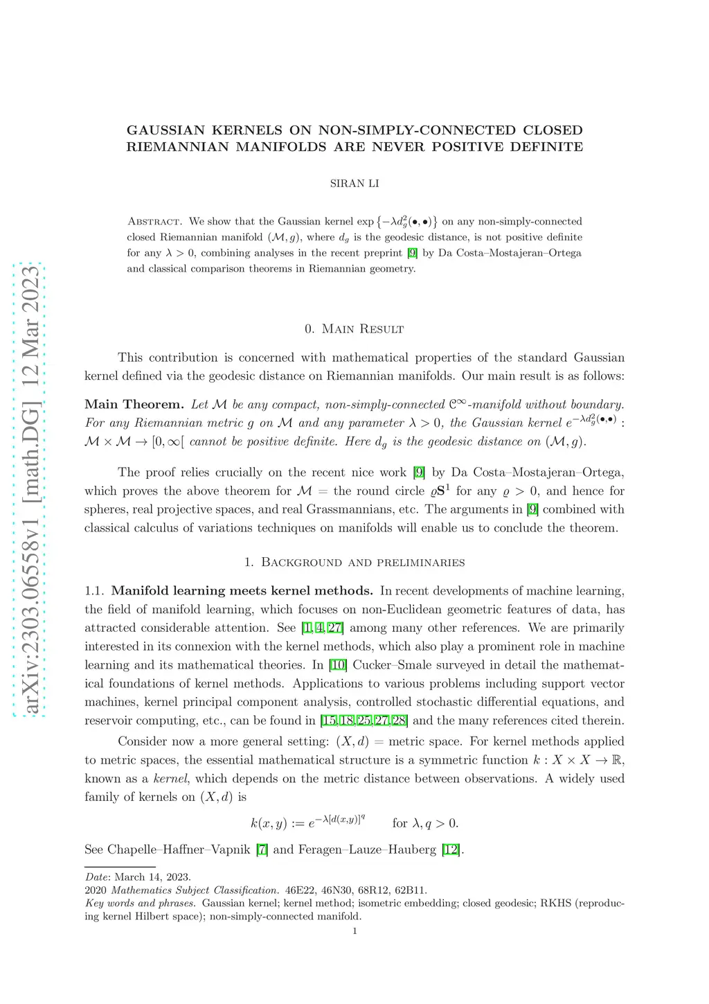 Gaussian kernels on non-simply-connected closed Riemannian manifolds are